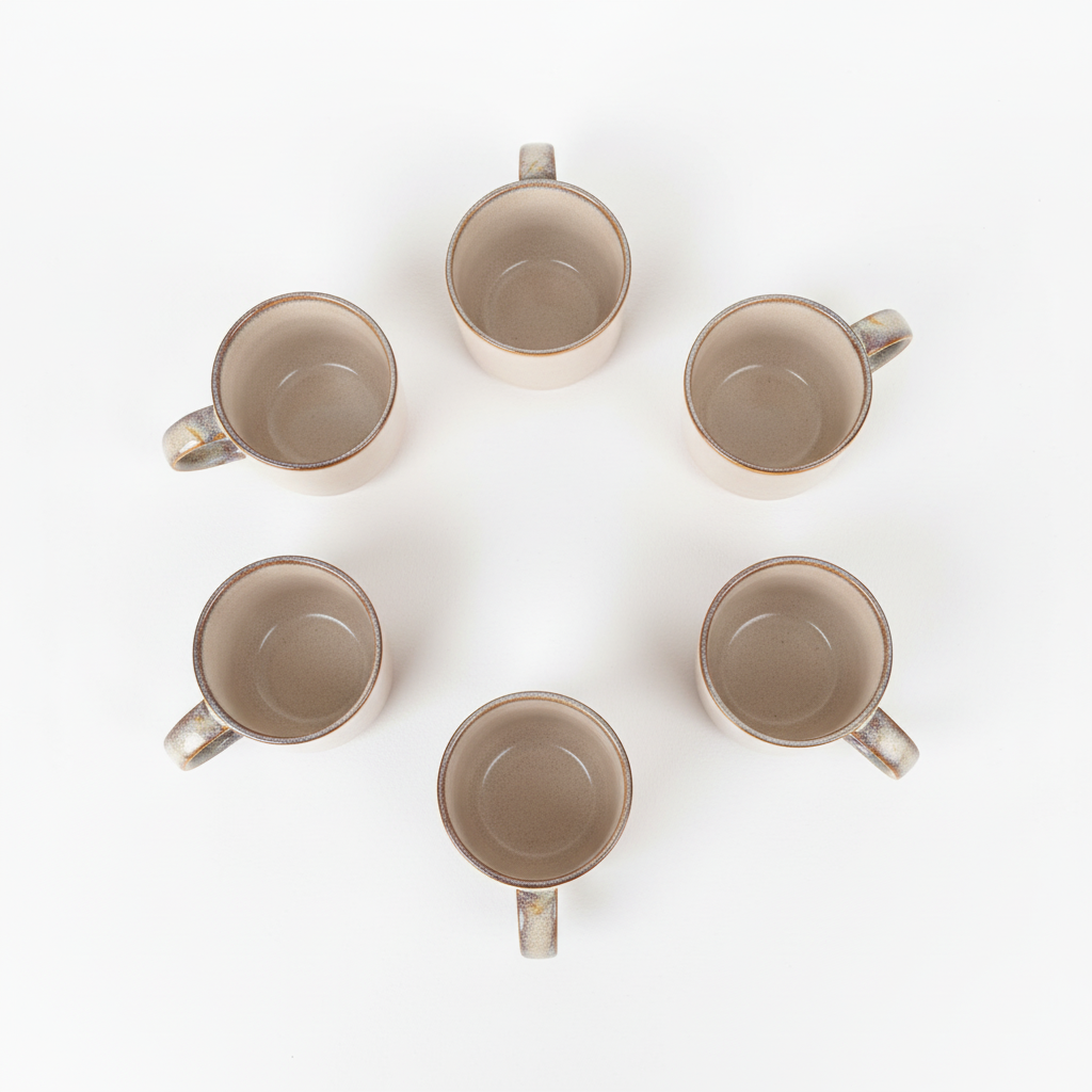 KUBKI DO KAWY HERBATY KUBEK ZESTAW 6 SZT BEŻOWO SZARE 350 ML Ø 9,5 CM