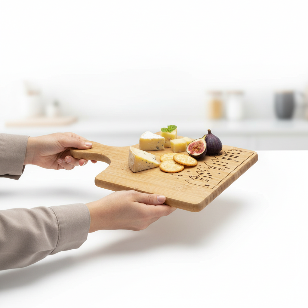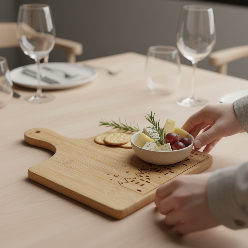 - ✅ ✨ ŁATWOŚĆ UŻYTKOWANIA – Dzięki materiałowi bambusowemu, deska jest lekka i łatwa do przenoszenia, co ułatwia serwowanie potraw na stole.