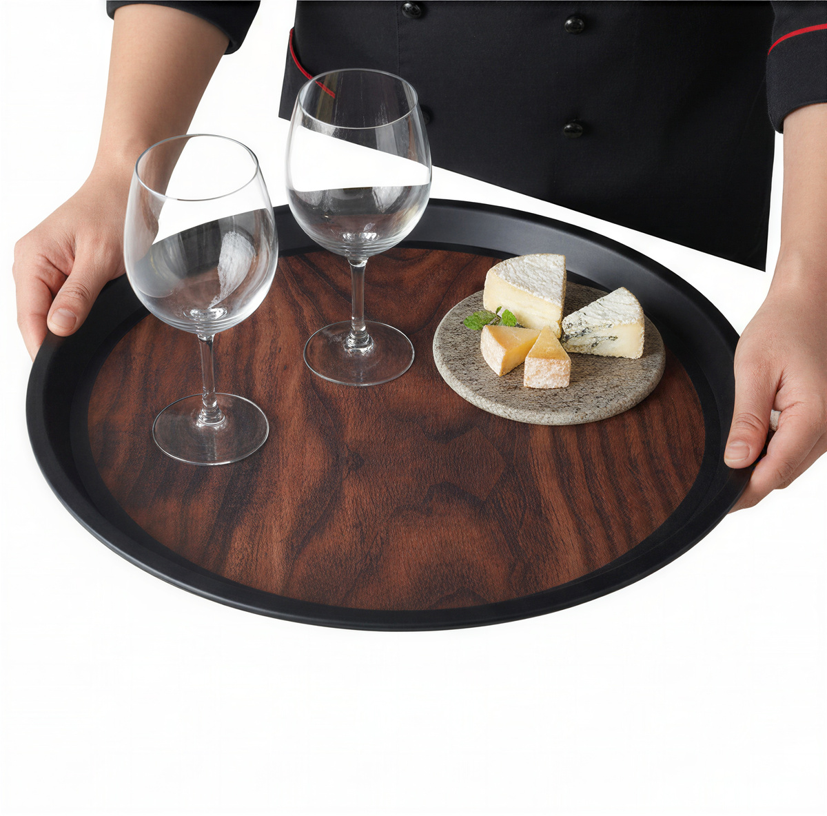 - ✅ ⚡ ESTETYKA – Taca kelnerska w eleganckim czarnym kolorze z imitacją drewna doskonale prezentuje się w każdej restauracji, przyciągając uwagę klientów.