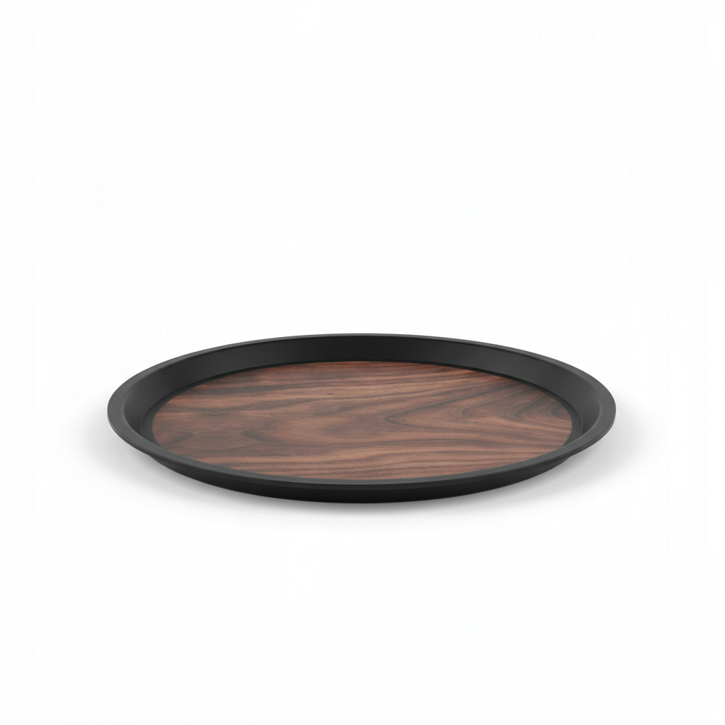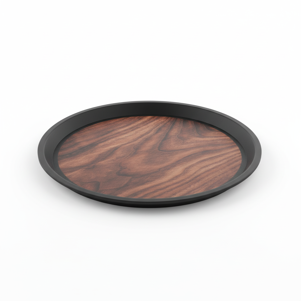 - Produkt: TACA KELNERSKA do restauracji czarna z imitacją drewna ciemny orzech 36Cm