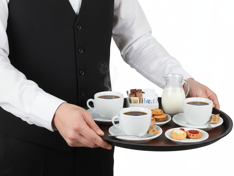 - Krok 1 — rozpocznij użycie tacy do serwowania napojów i potraw w restauracji.