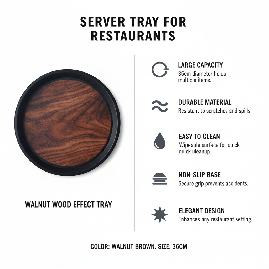 W codziennym zgiełku pracy w restauracji, serwowanie potraw w sposób elegancki i profesjonalny może być wyzwaniem. Często klienci borykają się z niezadowoleniem z niedopasowanych akcesoriów, które nie tylko wpływają na estetykę, ale także na komfort serwowania. TACA KELNERSKA do restauracji w kolorze orzechowym brązie z imitacją drewna ciemny orzech to idealne rozwiązanie. Dzięki swojej wielkości 36 cm i eleganckiemu wyglądowi, staje się nie tylko funkcjonalnym narzędziem, ale i stylowym dodatkiem. Transformuje każdy serwis w wyjątkowe doświadczenie, które zachwyca zarówno kelnerów, jak i gości. ✨