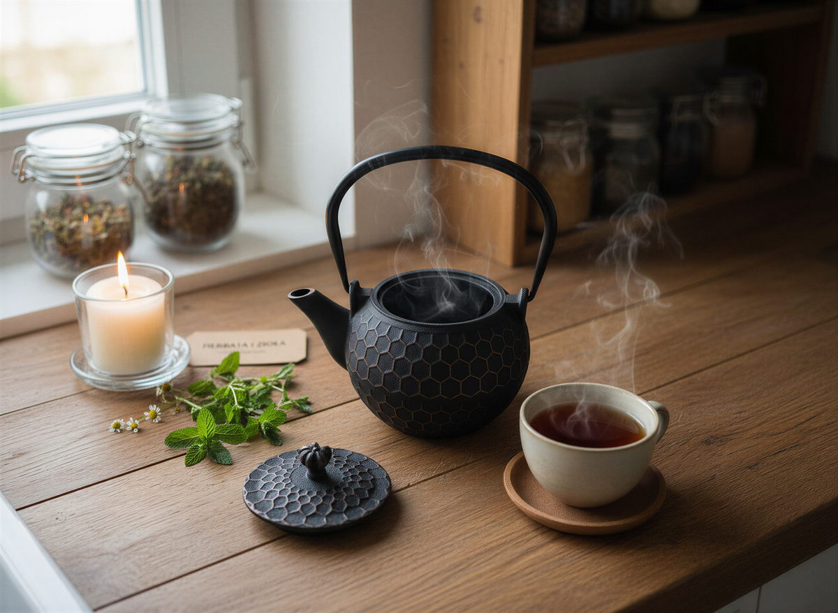 Gdy woda zaczyna wrzeć, słyszysz przyjemny dźwięk bulgotania, który wywołuje uczucie błogości. Ciepło żeliwa otula dłonie, a aromat herbaty wypełnia przestrzeń, tworząc niepowtarzalną atmosferę relaksu i spokoju.