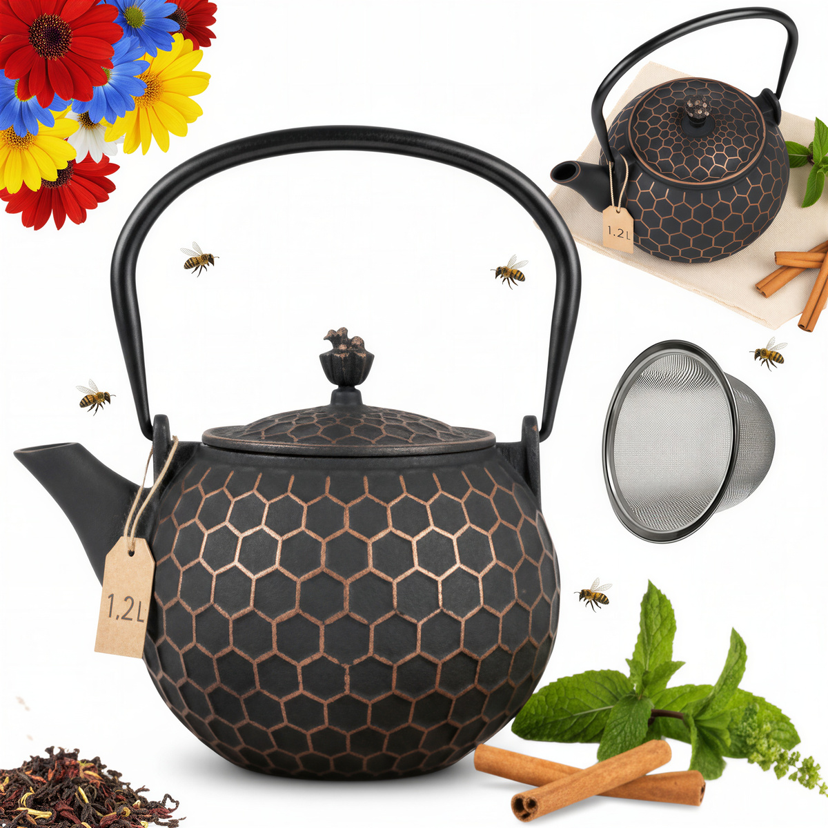 - ✅ ❤️ ZDROWIE – Żeliwny czajnik o pojemności 1,2 L idealnie nadaje się do parzenia herbaty i ziół, co sprzyja zdrowemu stylowi życia i poprawia samopoczucie.