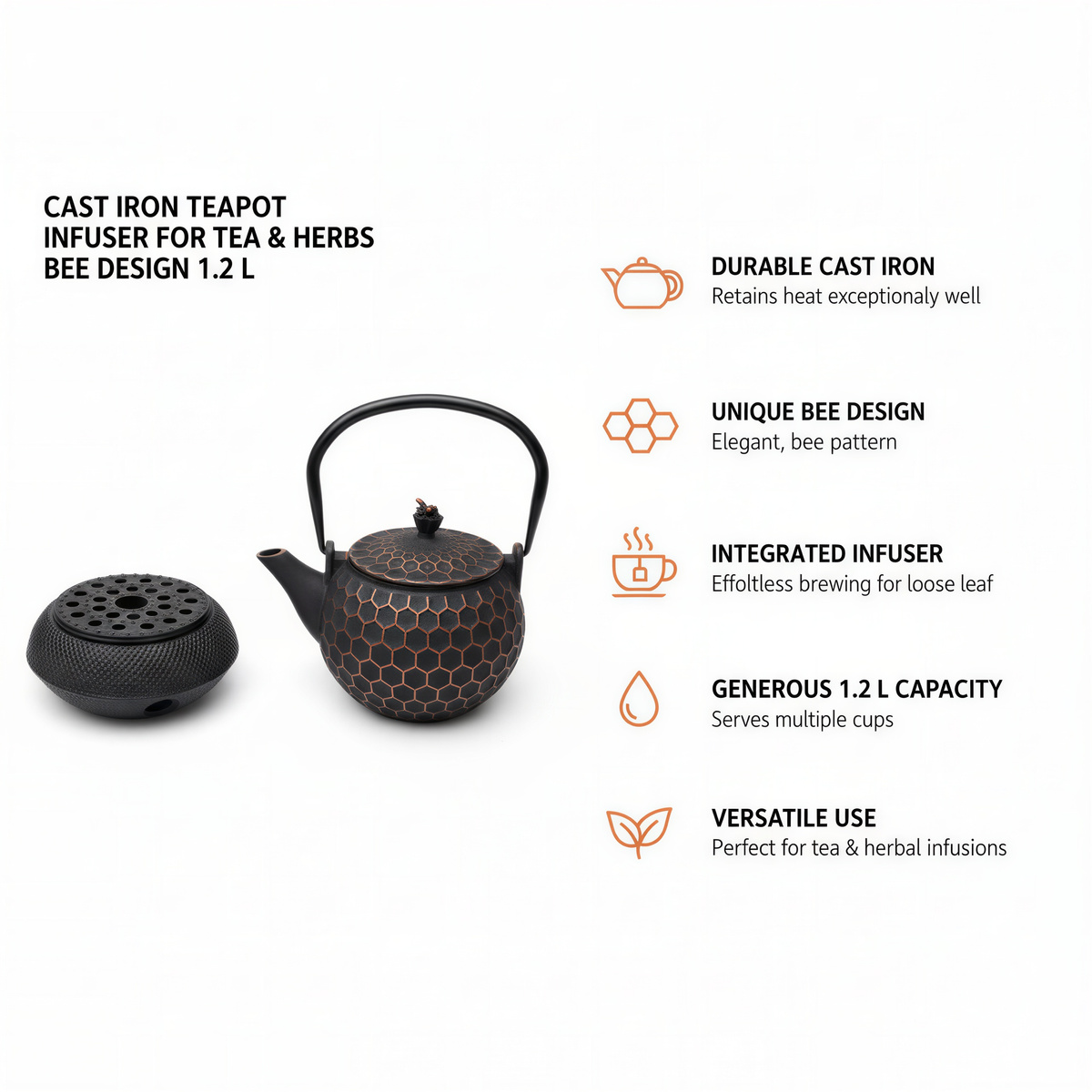 - ✅ ⚡ WYJĄTKOWY SMAK – Czajnik żeliwny 1,2L utrzymuje idealną temperaturę, co wydobywa pełnię aromatu herbaty i ziół. Dzięki temu doświadczasz intensywności smaku w każdym łyku!