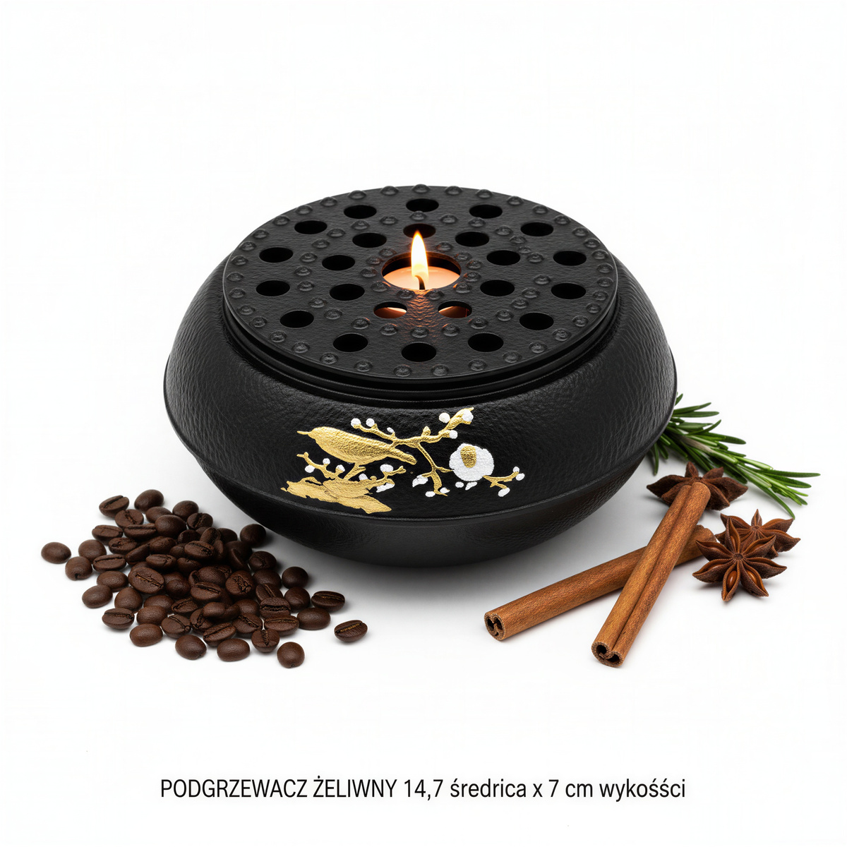Podgrzewacz żeliwny Ø 14,7 cm czarny – ciepło w Twoim domu ✨