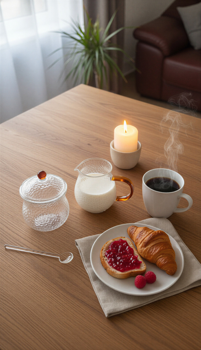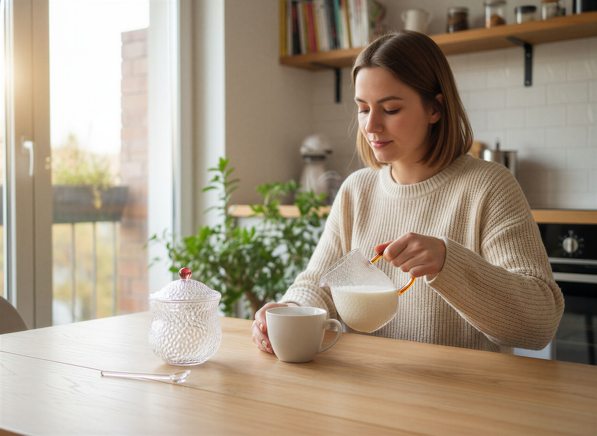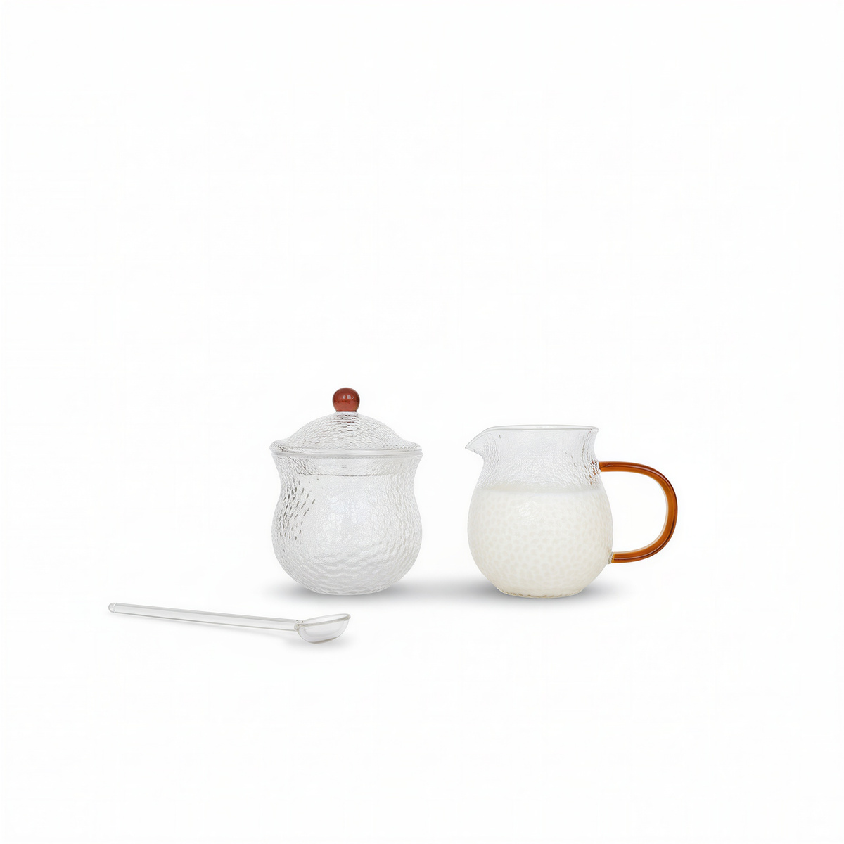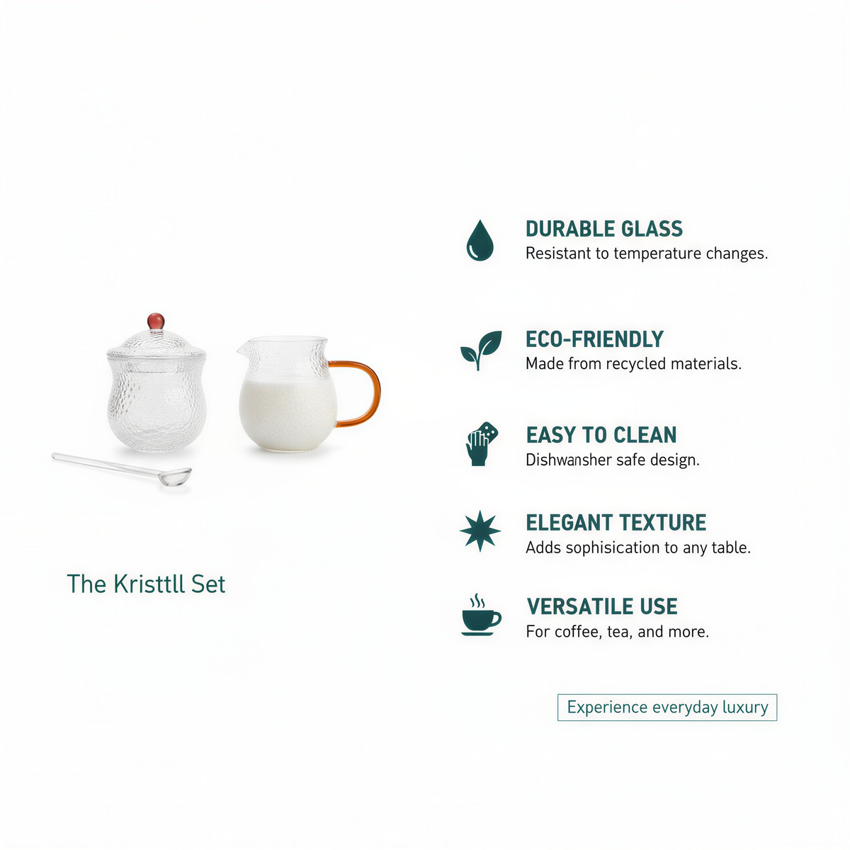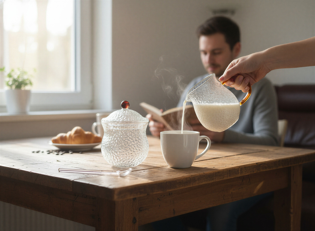 - ✅ Komplet 3 elementów – mlecznik, cukiernica z łyżeczką szklaną zapewniają pełne wyposażenie do serwowania ulubionych napojów i dodatków.