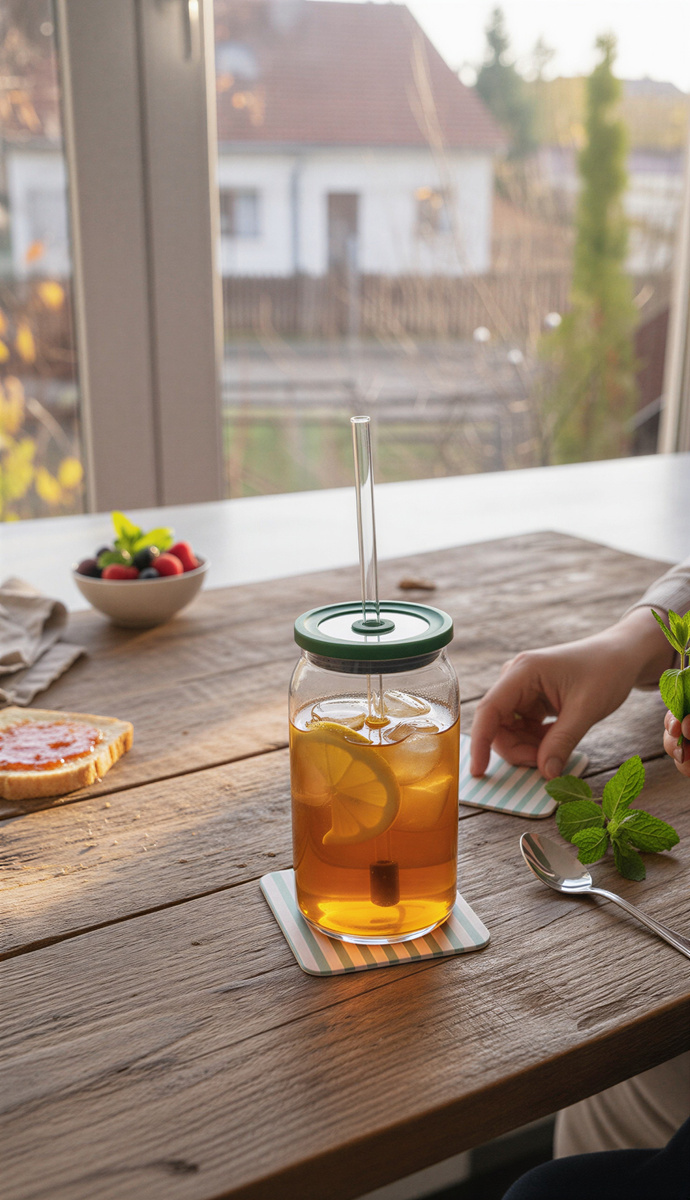 • Wysoka jakość materiałów – kubek wykonany z trwałego szkła, a słomka i pokrywka z bezpiecznego plastiku, gwarantują komfort i bezpieczeństwo użytkowania.