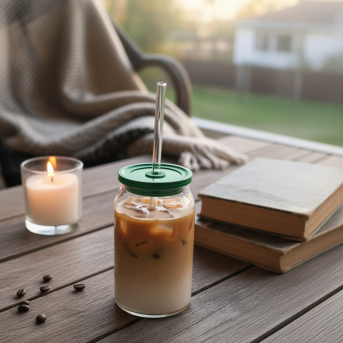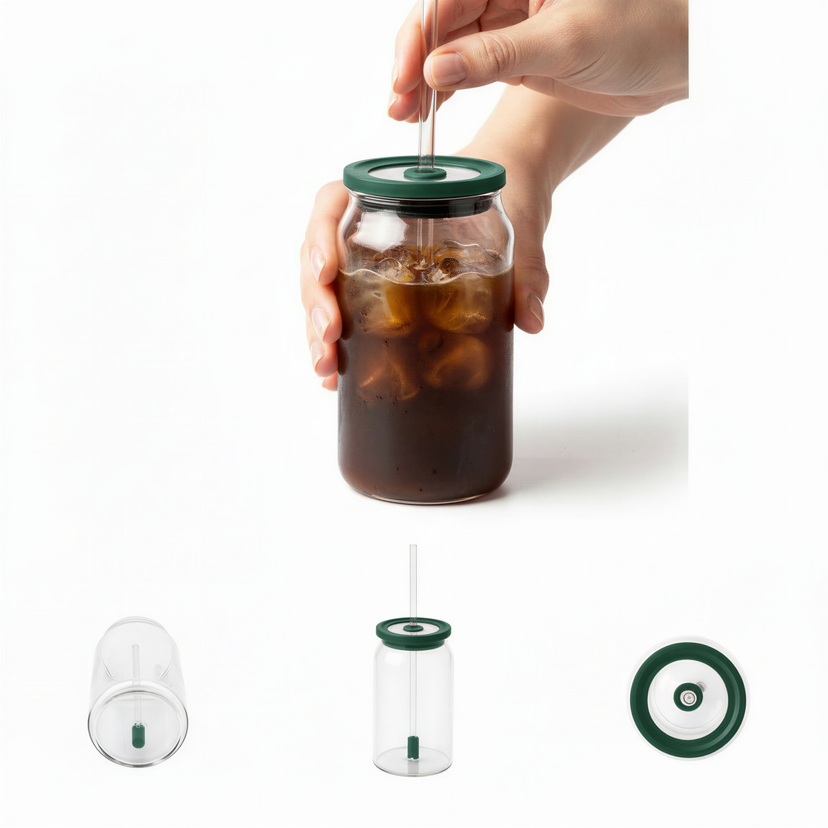 • ✅ ❤️ KOMFORT UŻYTKOWANIA – zestaw 3 elementów: kubek, szklane wieczko i słomka umożliwia wygodne picie oraz łatwe utrzymanie czystości, idealne na co dzień i w podróży.