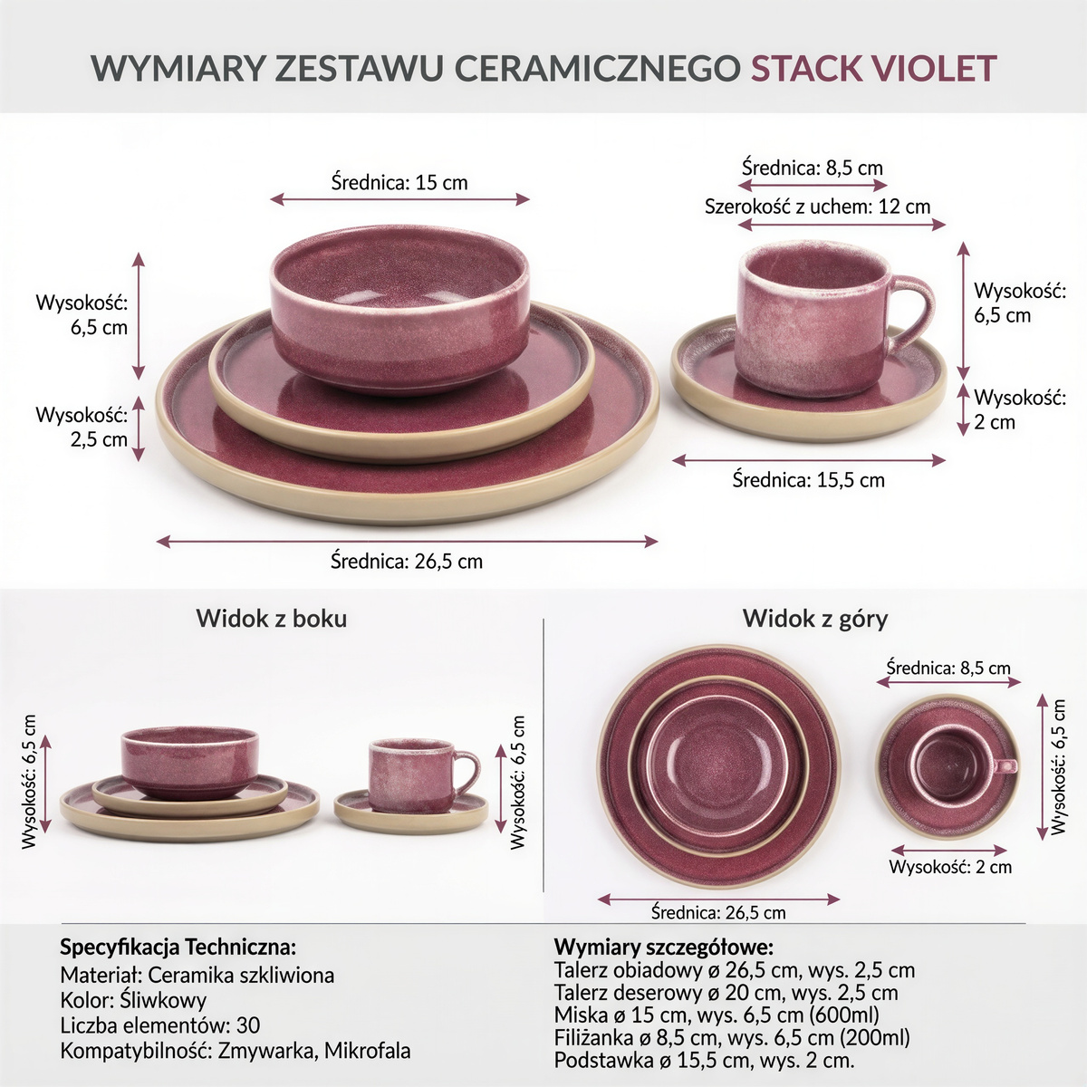 - Produkt: Ceramiczna linia Stack Violet serwis obiadowy 30 el