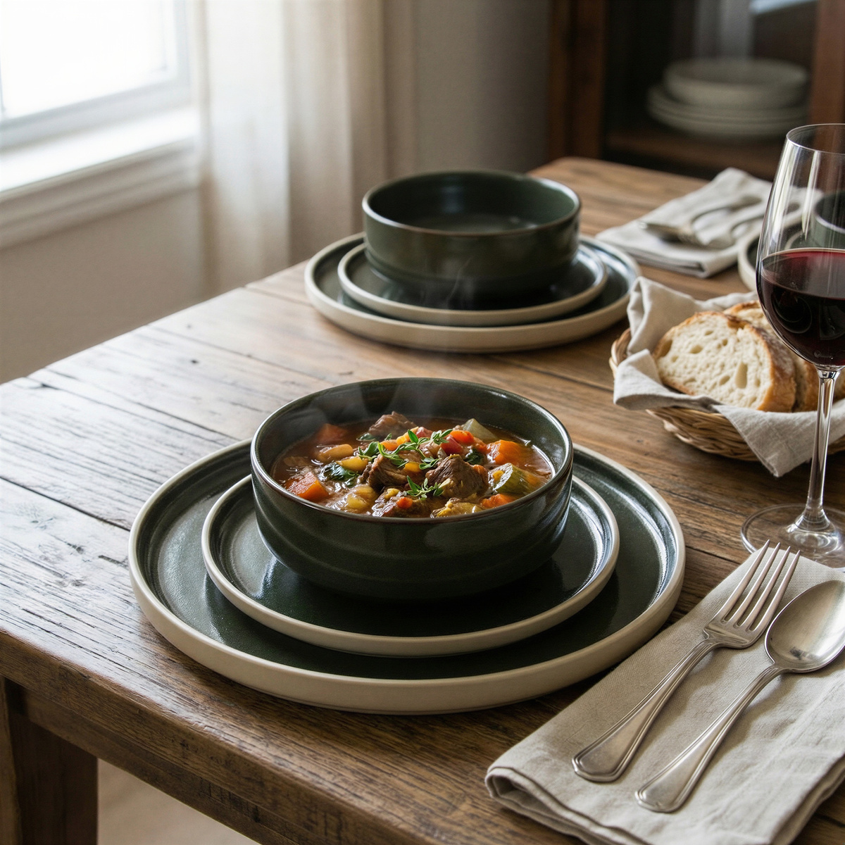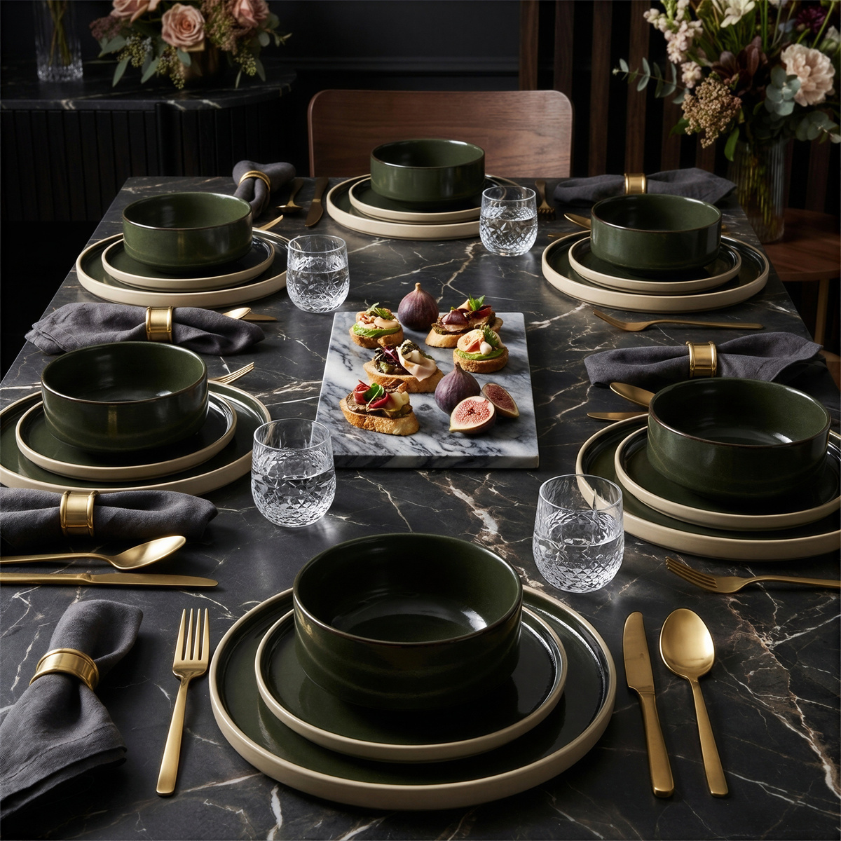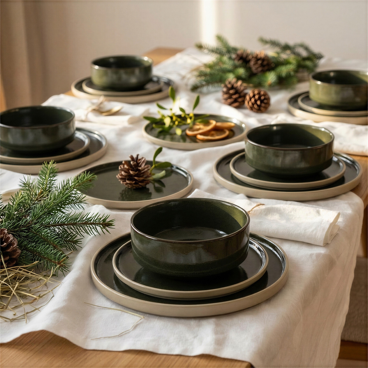 Ceramiczny serwis obiadowy Stack Green – twój stół pełen ciepła ✨
