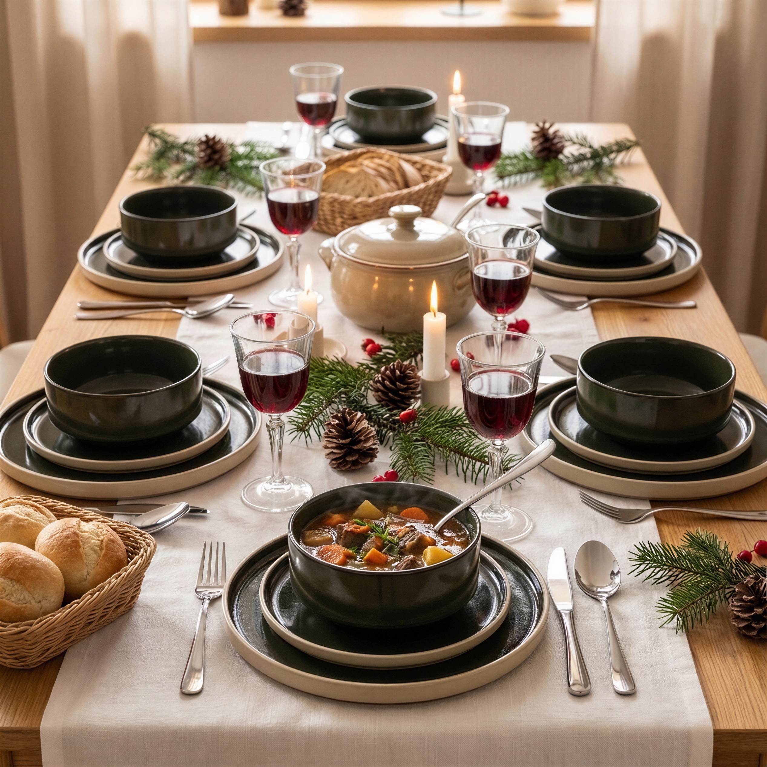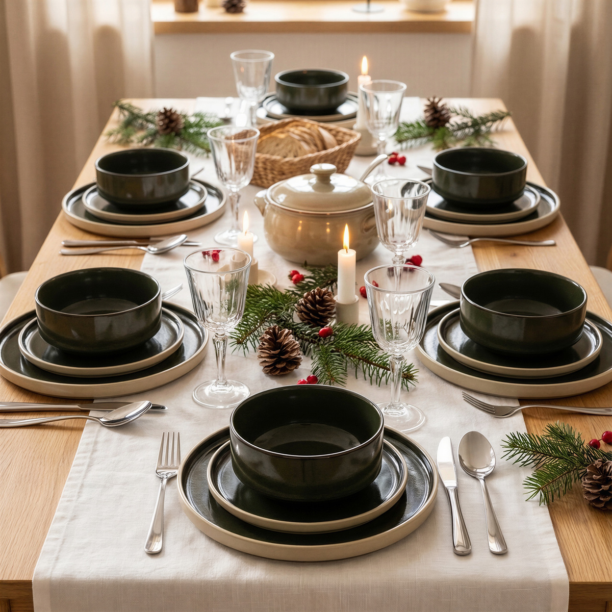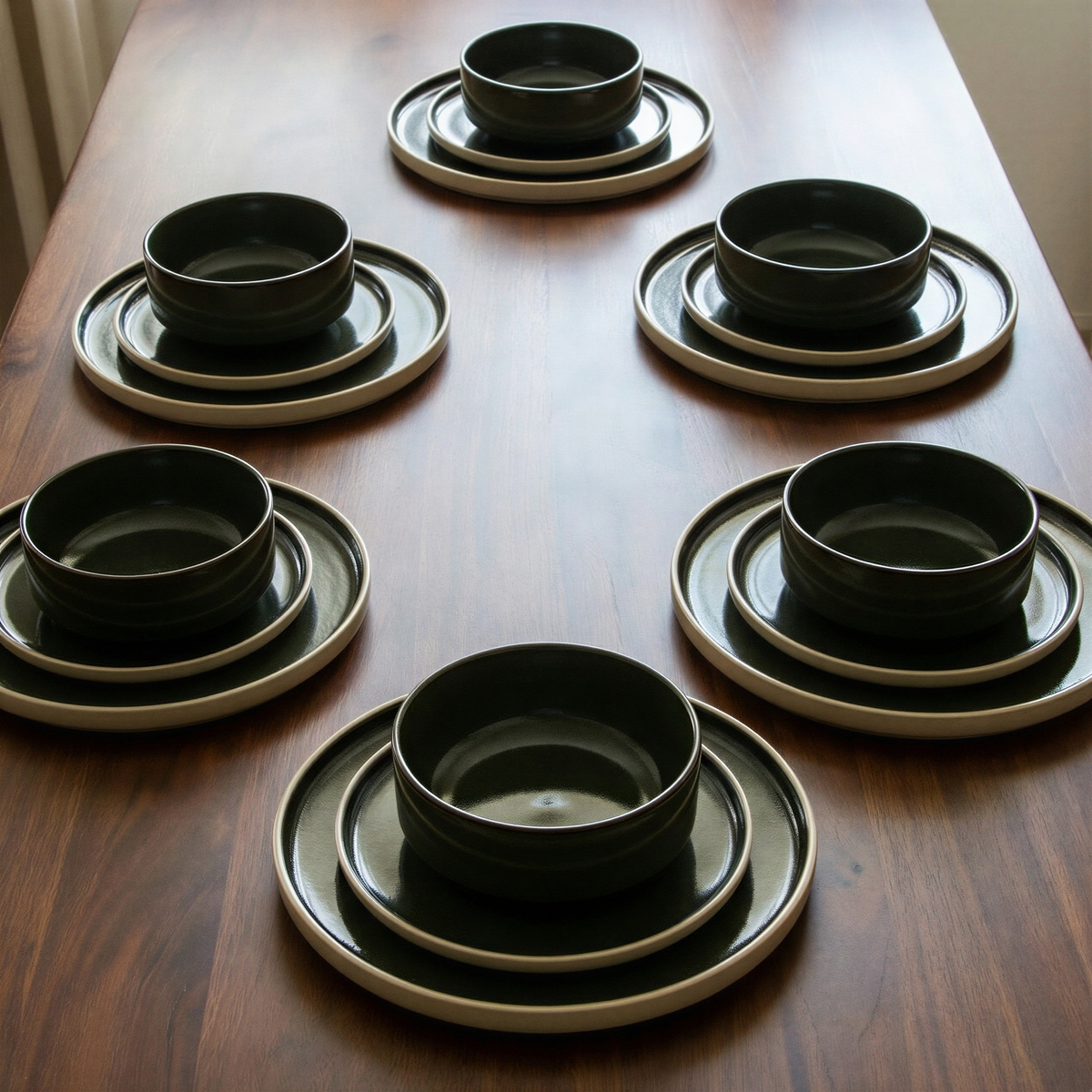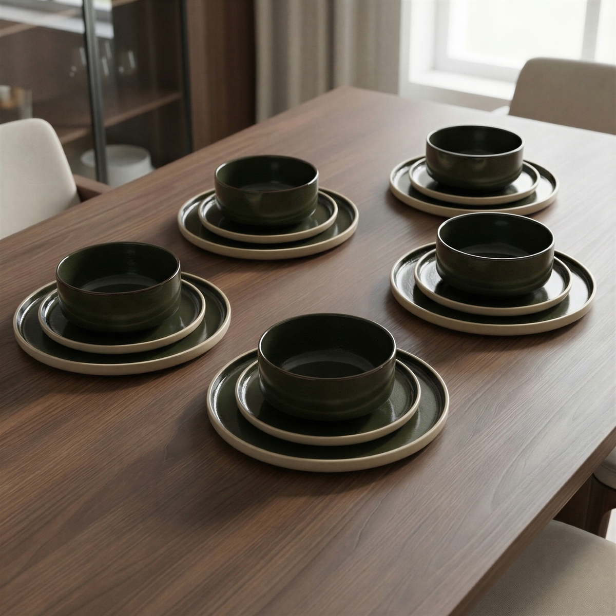 Ceramiczny serwis obiadowy Stack Green – twój stół pełen ciepła ✨