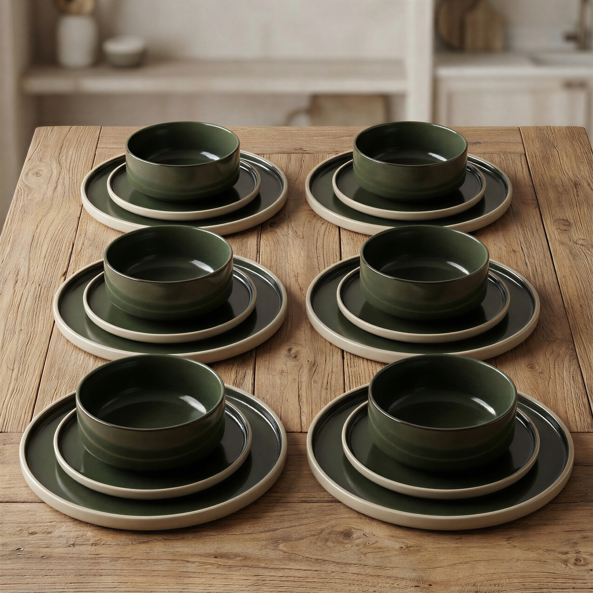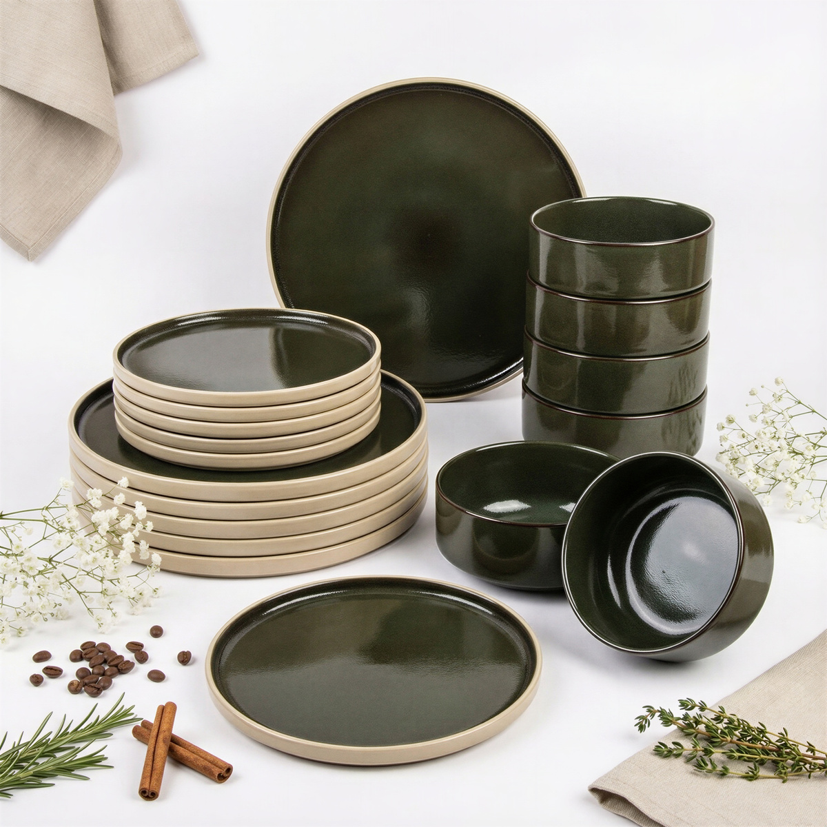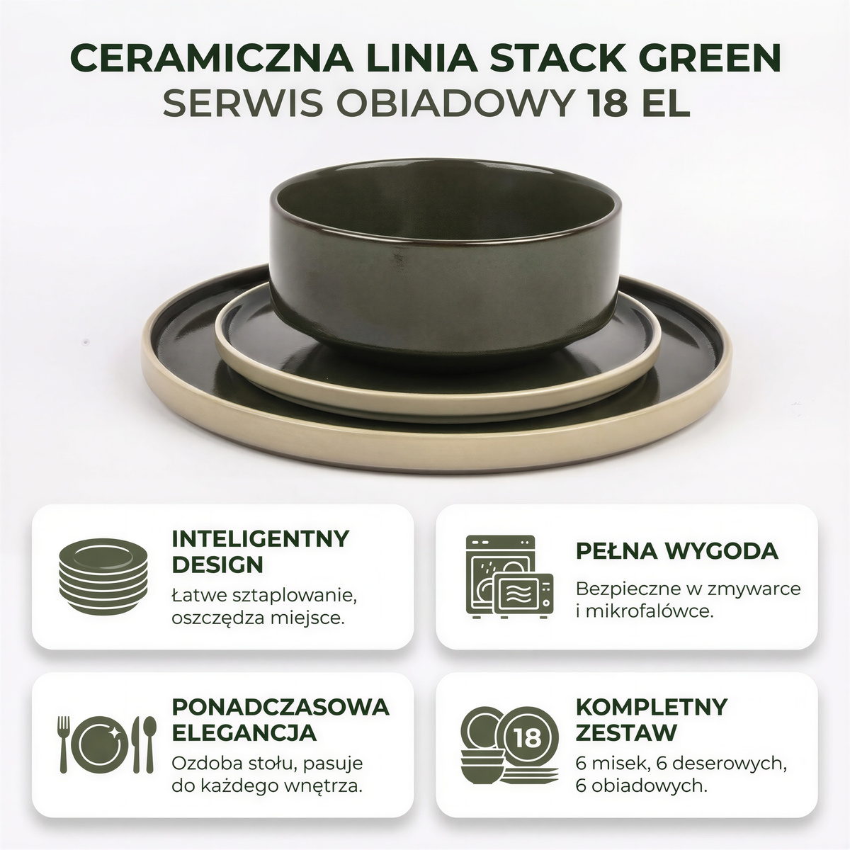 Odkryj elegancję z CERAMICZNYM SERWISEM OBIADOWYM STACK GREEN 18 EL ZIELONYM DO SERWOWANIA – wyjątkowy zestaw dla całej rodziny!