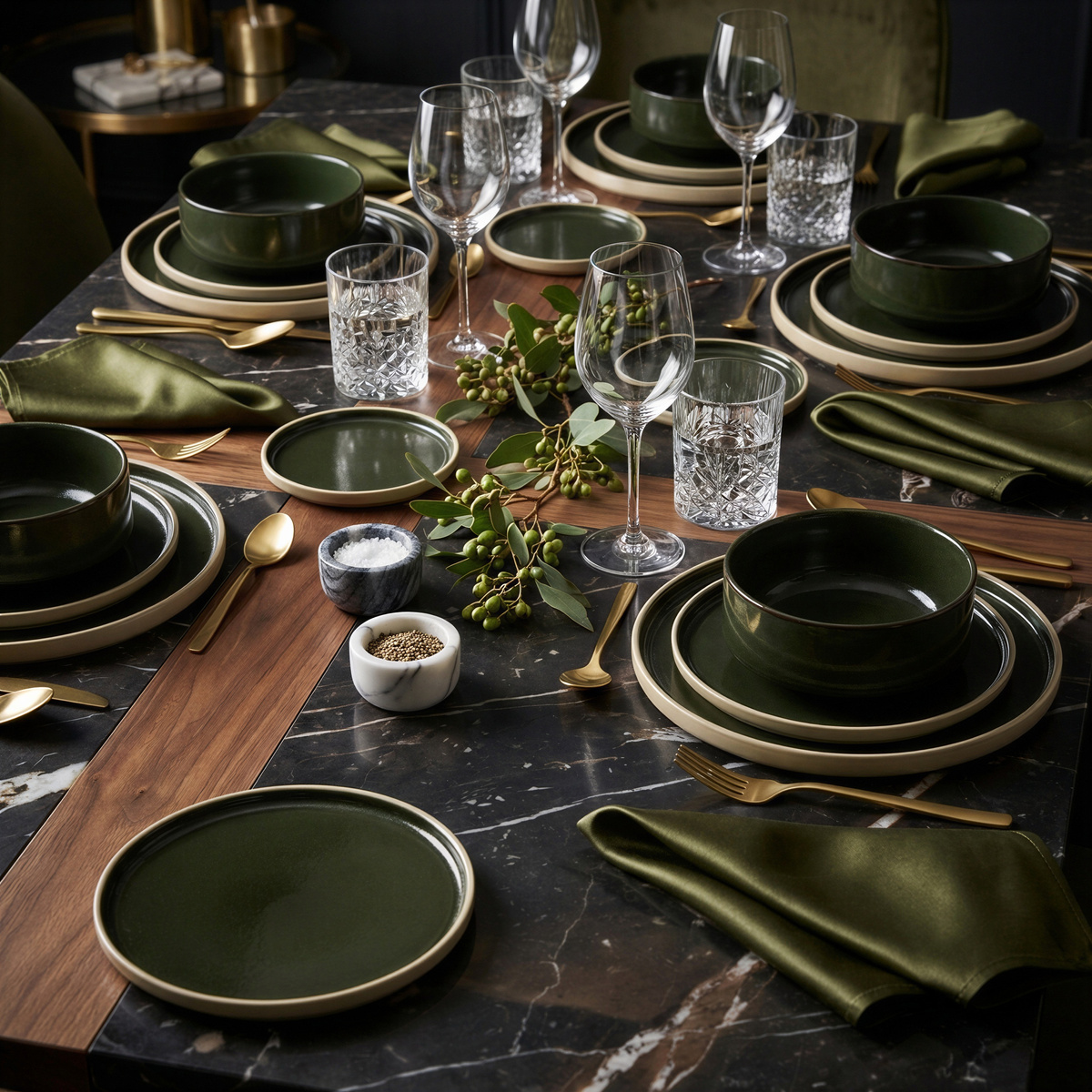 - ✅ Piękny, ciemny oliwkowo-zielony kolor – wprowadza naturalny, stonowany akcent do aranżacji stołu, podkreślając wyjątkowy charakter każdej chwili.