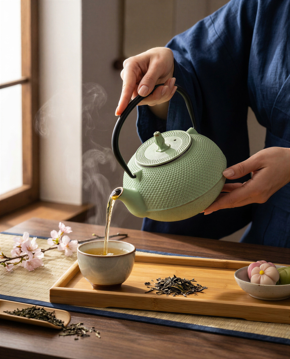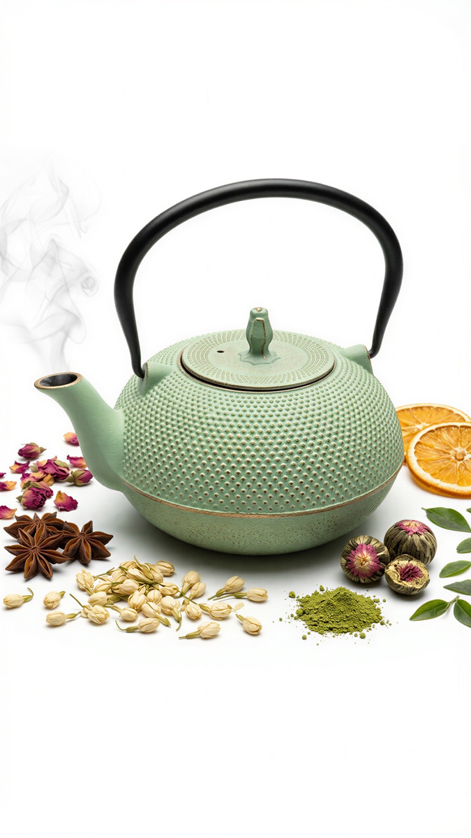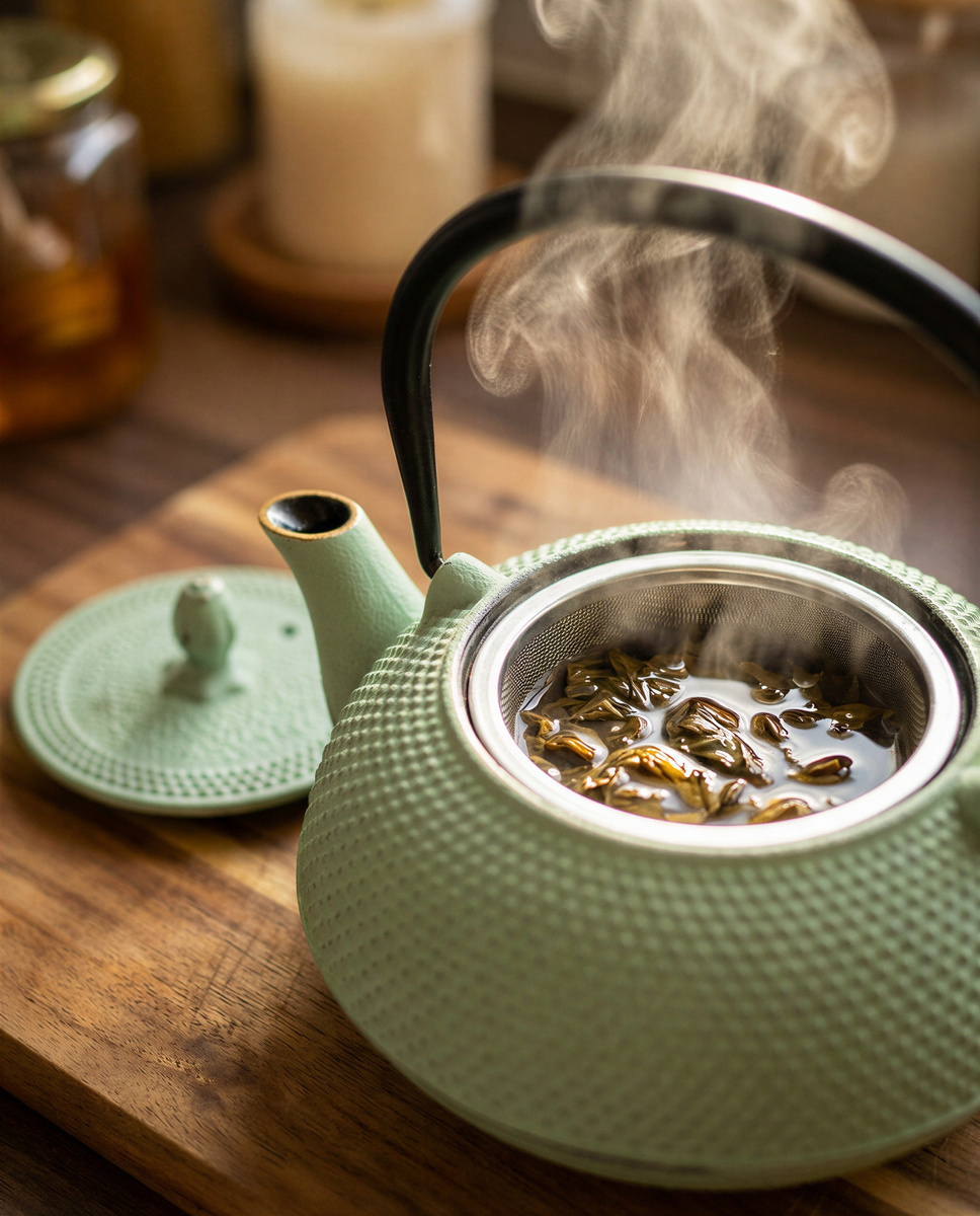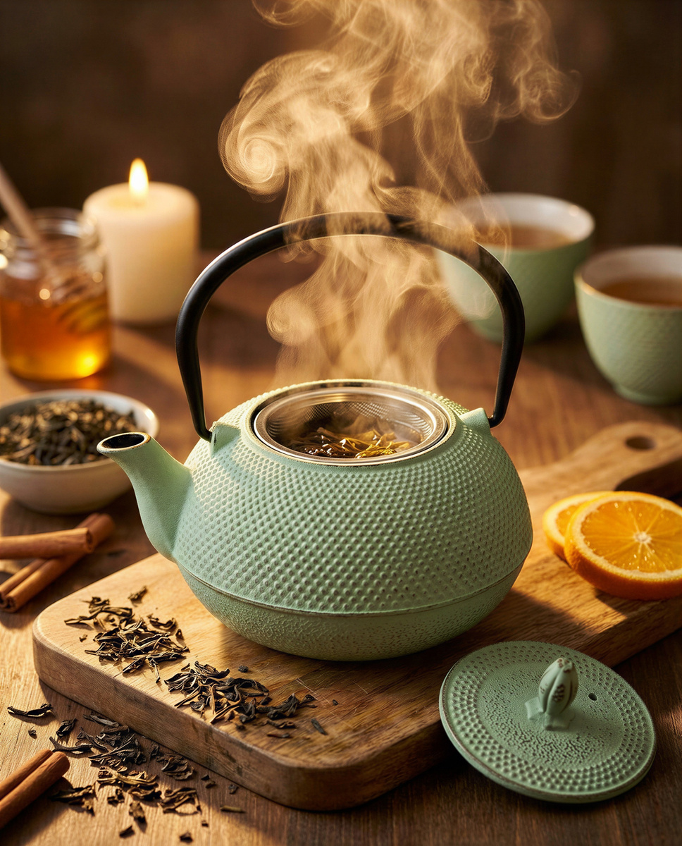 Miętowy żeliwny imbryk z zaparzaczem – Twój codzienny rytuał ☕✨