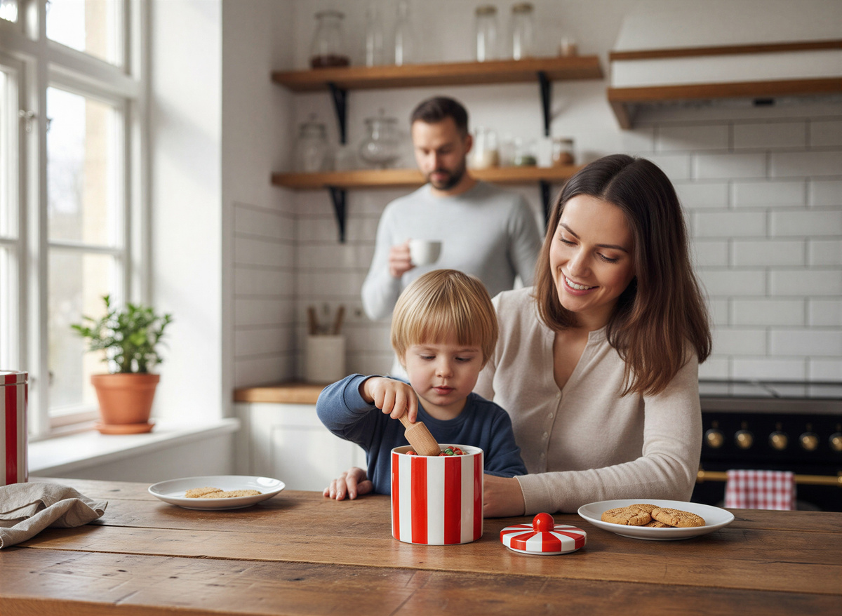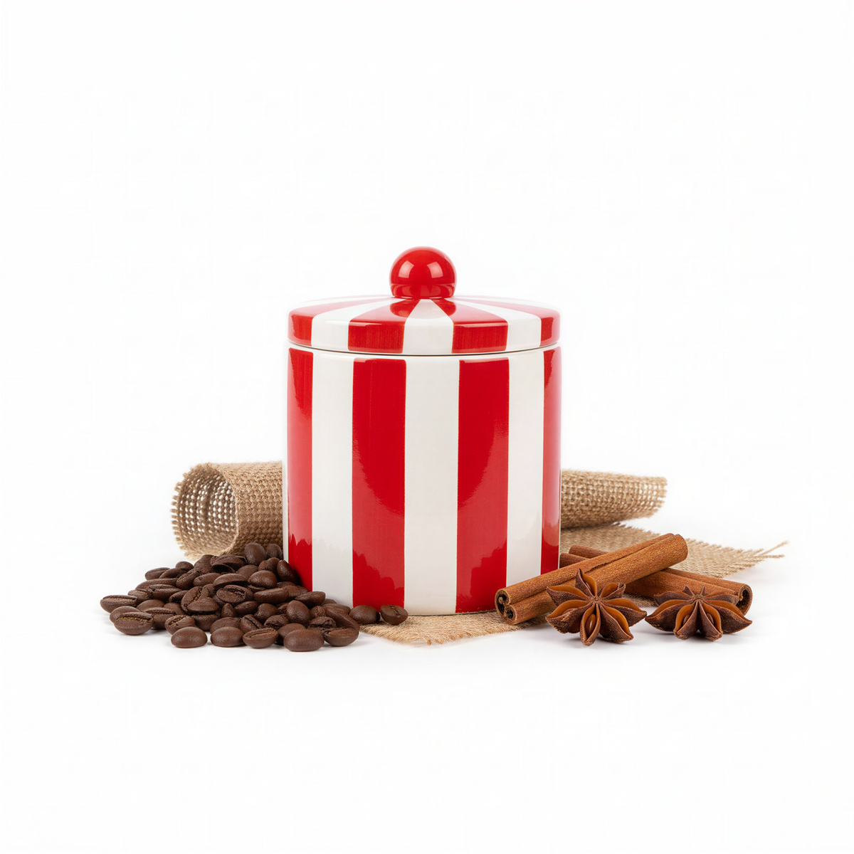 Kiedy sięgasz po słoik, wyczuwasz gładką, chłodną powierzchnię ceramiki, a żywe kolory bieli i czerwieni tworzą pełną świątecznego ciepła kompozycję. Delikatny połysk, lekkość ręcznie zdobionych detali oraz subtelny ciężar sprawiają, że każdego dnia odkrywasz w nim coś nowego. To małe dzieło sztuki, które pobudza zmysły i wzbogaca wnętrze ☀️.