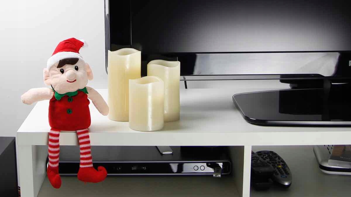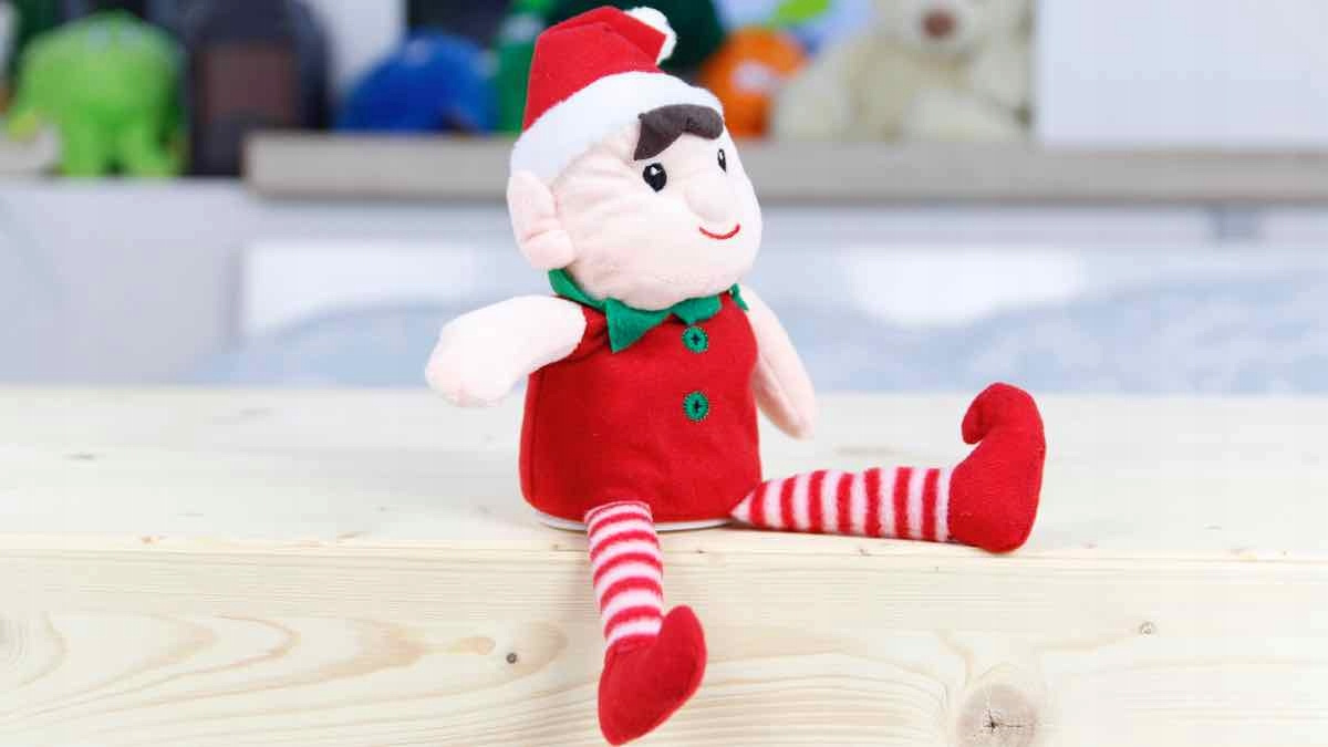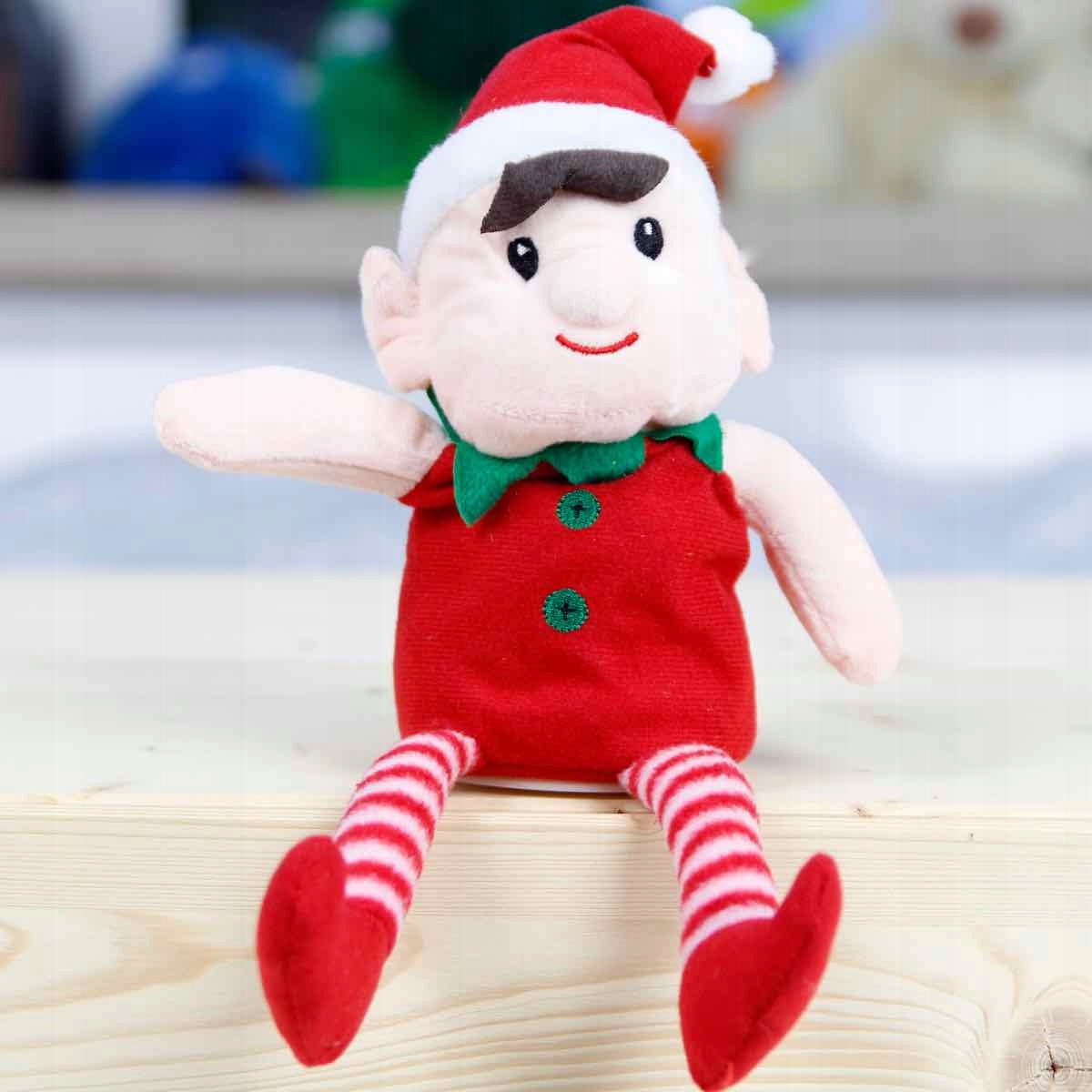 Pluszowy elf w czapce Świętego Mikołaj.