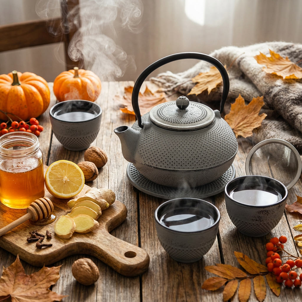 Żeliwny czajnik imbryk z czarkami – chwile pełne ciepła ☕✨