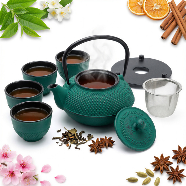 Odkryj wyjątkowy ŻELIWNY ZESTAW 6 ELE. TURKUSOWY DO HERBATY Ø 18 CM i ciesz się doskonałą herbatą!