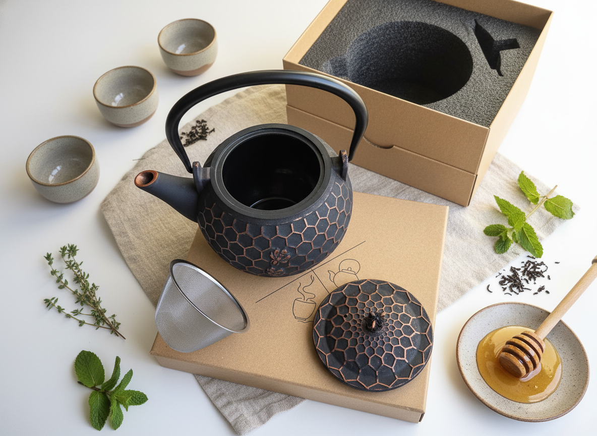 Marzysz o idealnej chwili relaksu z filiżanką aromatycznej herbaty, ale ciągłe poszukiwania idealnego czajnika stają się frustrujące? Czas zakończyć te zmagania! Czajnik żeliwny imbryk zaparzacz do herbaty i ziół 1,8L Pszczółka to elegancki, czarny model z miedzianymi akcentami, który nie tylko przyciąga wzrok, ale także zapewnia wyjątkowe doznania smakowe. Dzięki pojemności 1,8L możesz cieszyć się herbatą w gronie przyjaciół i rodziny. Wykonany z matowego żeliwa, ten czajnik gwarantuje doskonałą izolację ciepła, a jego klasyczny design wprowadzi harmonię do każdej kuchni. Odkryj, jak kawałek sztuki może zmienić zwykłe parzenie herbaty w prawdziwy rytuał!