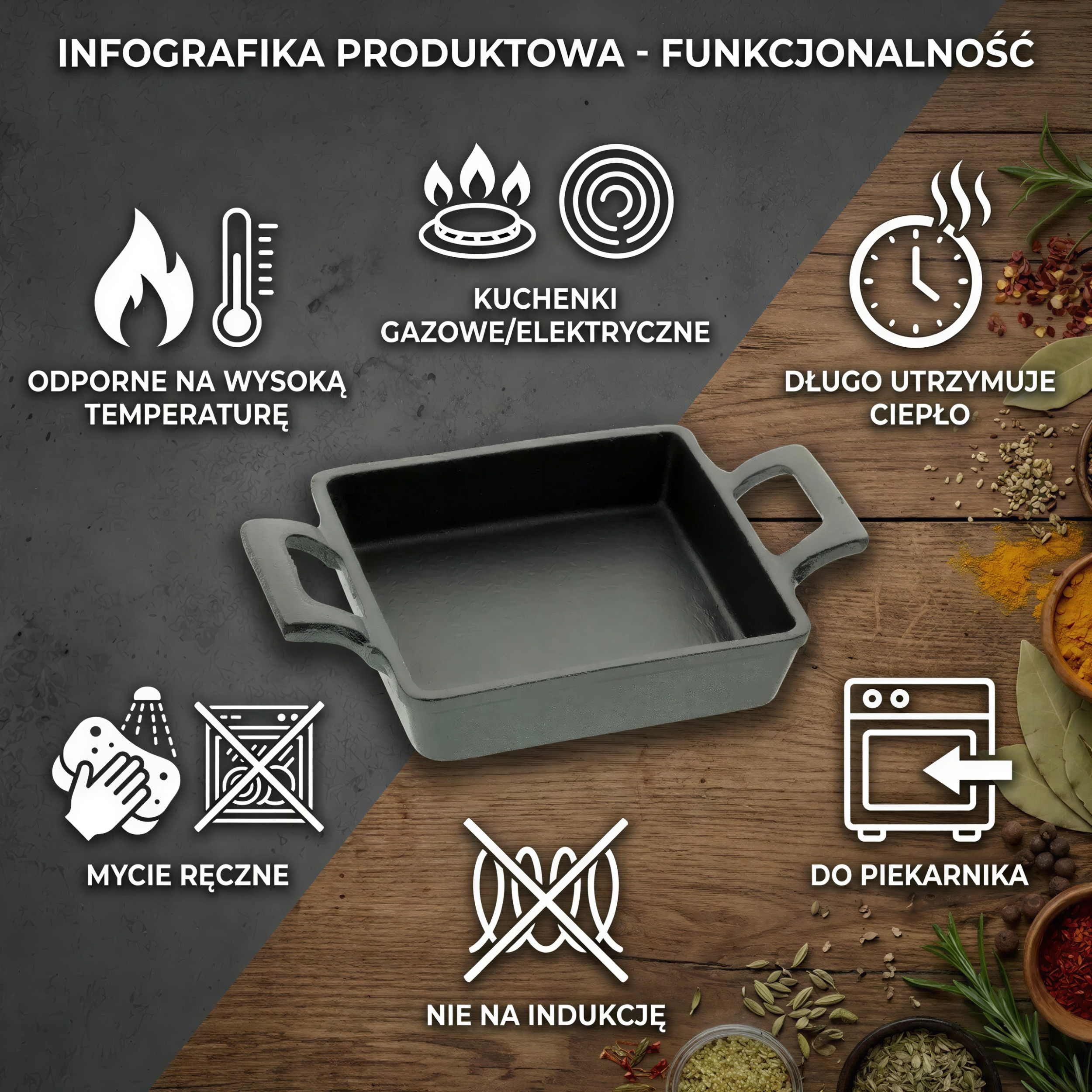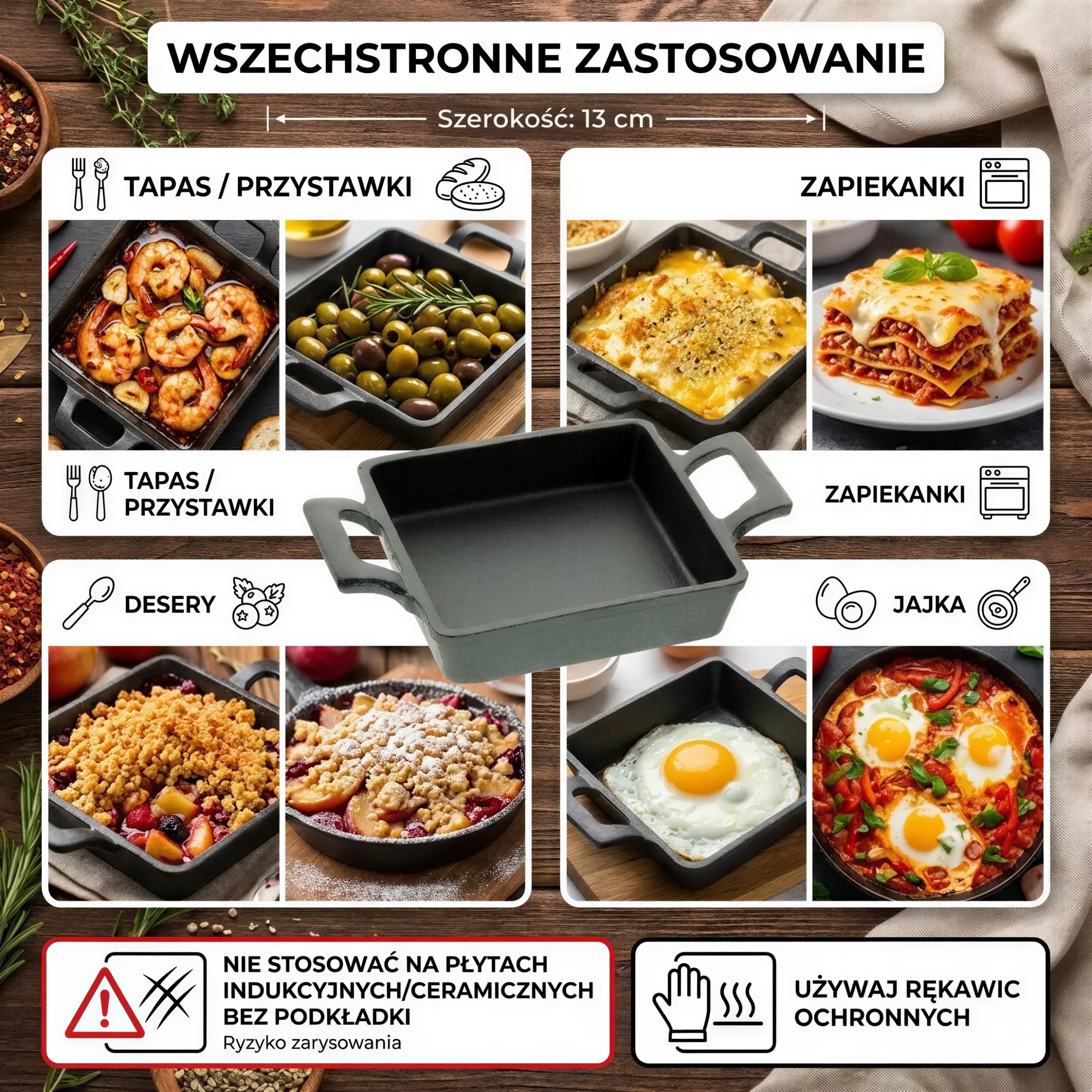 - ✅ Wszechstronne zastosowanie – do zapiekania, smażenia i podawania dań bezpośrednio z naczynia.