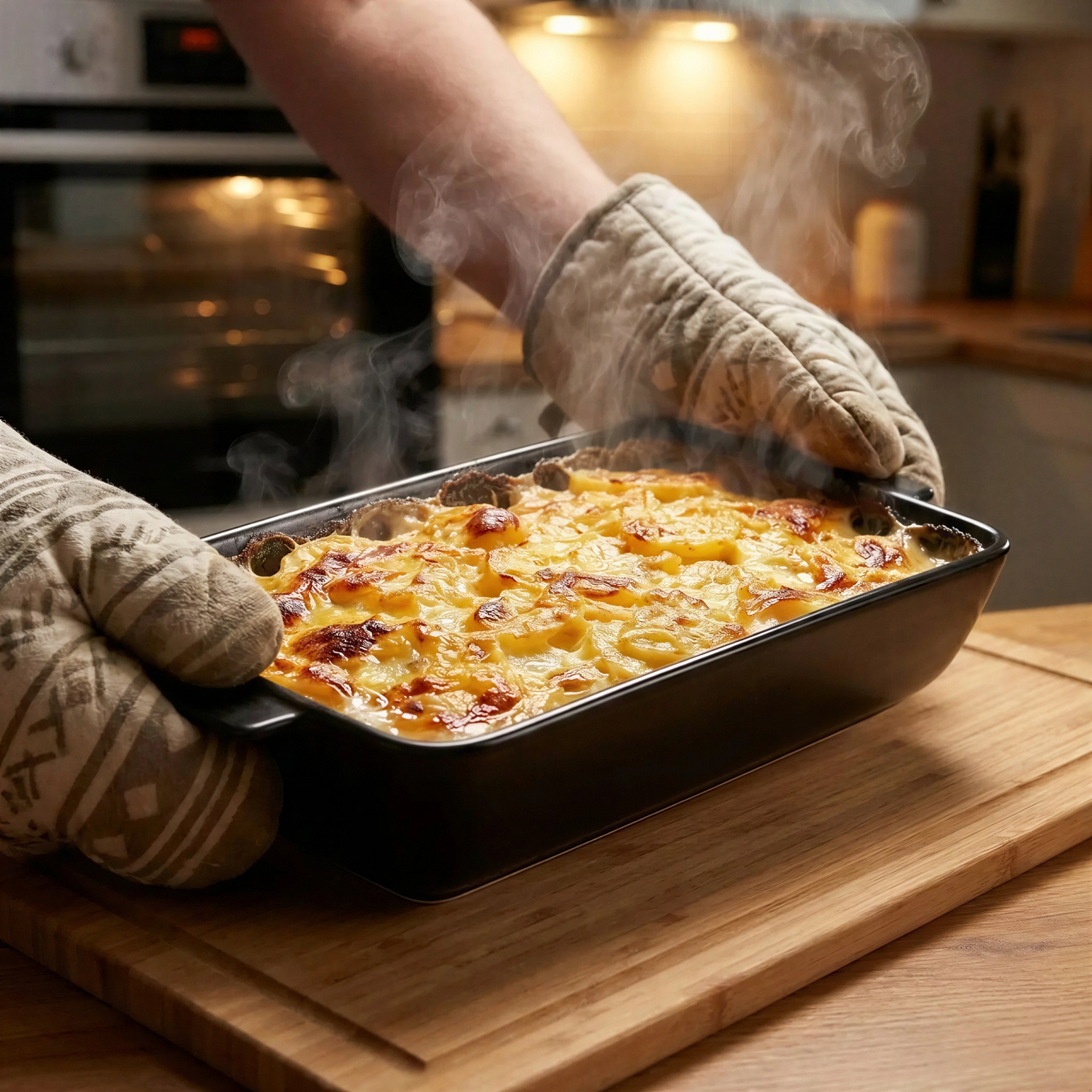 - ✅ Uniwersalne zastosowanie – sprawdzi się do pieczenia i do serwowania, co pozwala na wygodne przenoszenie potraw na stół.
