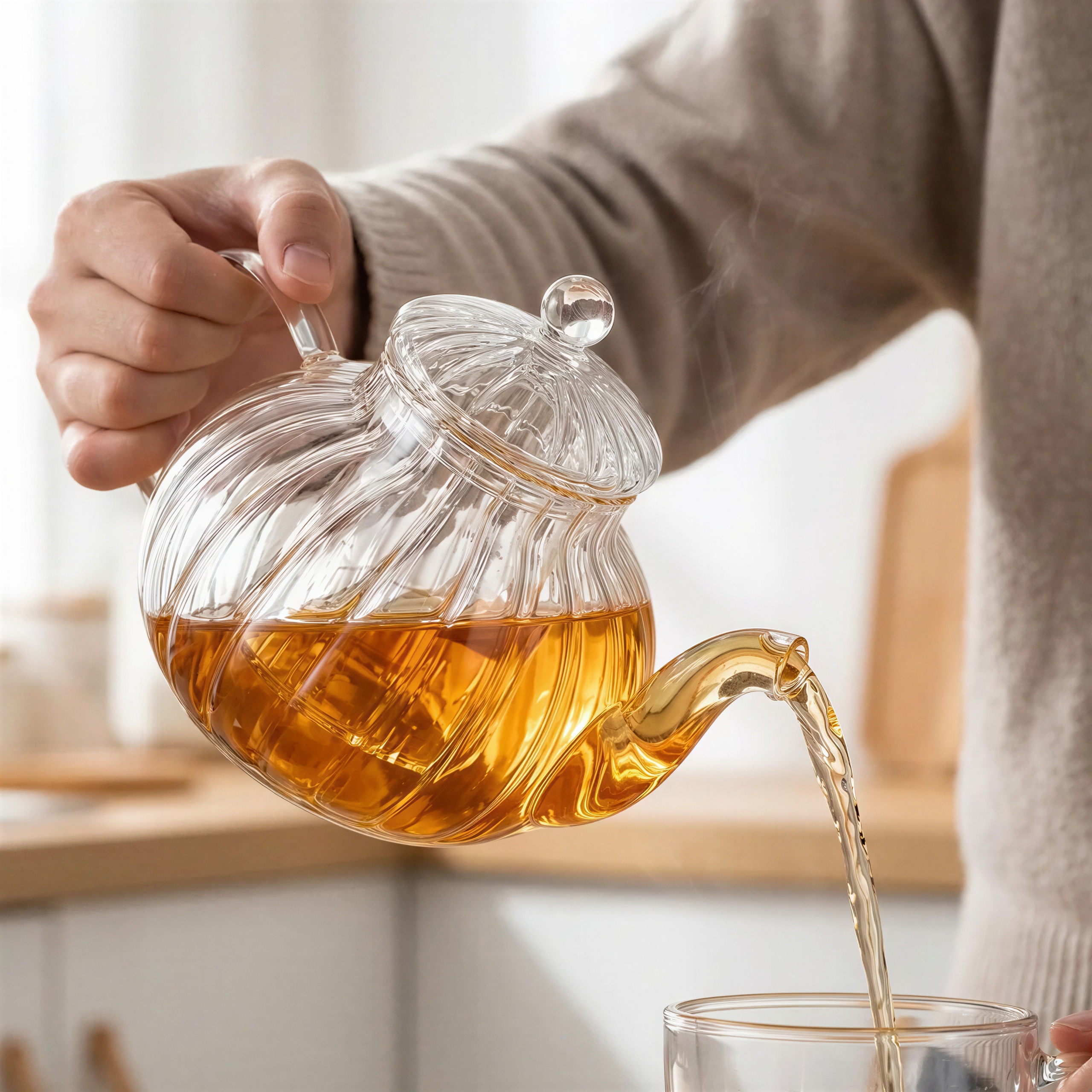 Delikatne borosilikatowe szkło otula Twoje dłonie ciepłem, a krystaliczna przejrzystość pozwala obserwować proces zaparzania z bliska. Gładka faktura i subtelny dźwięk nalewanej herbaty tworzą niepowtarzalną atmosferę, która koi zmysły i zaprasza do chwili wyciszenia ☀️.