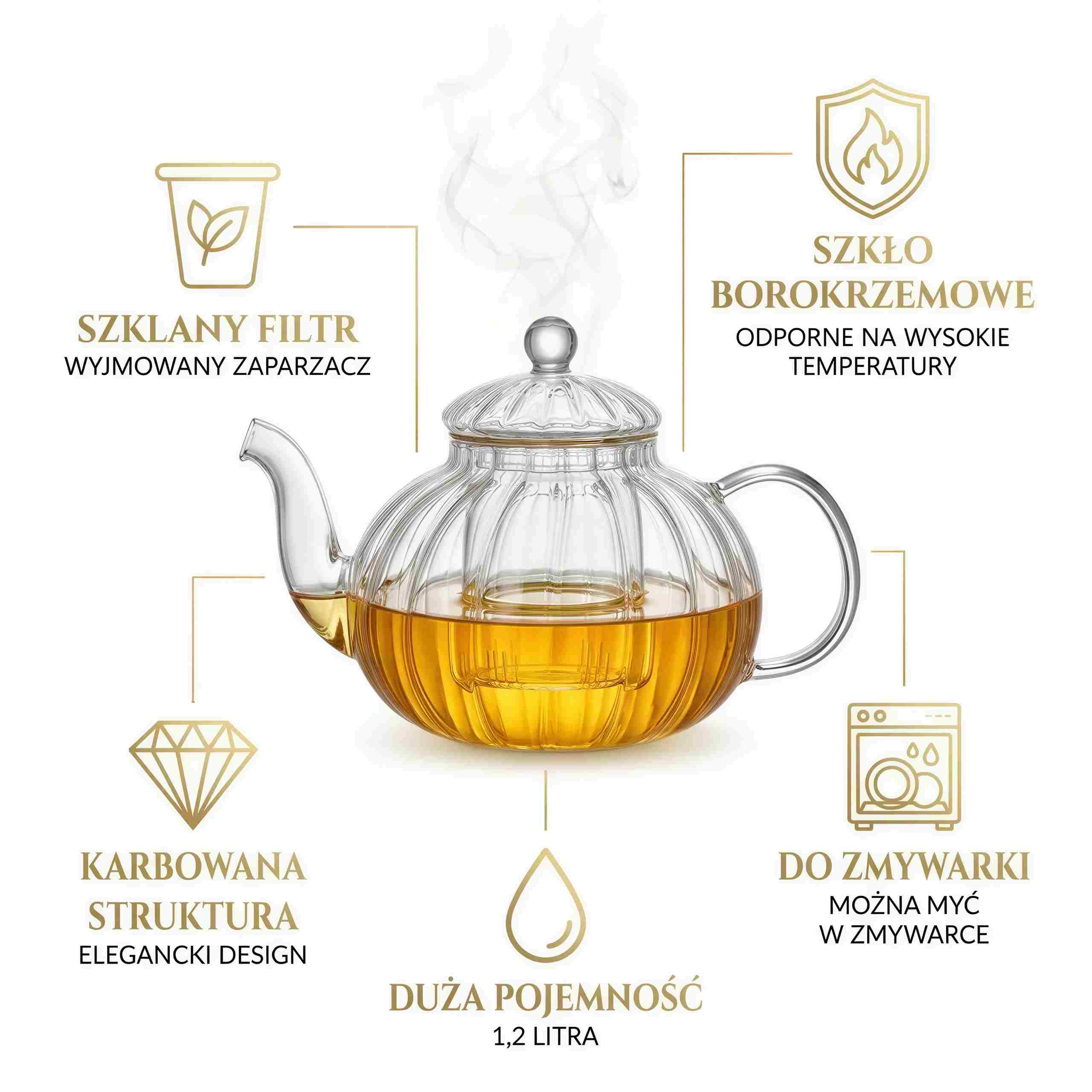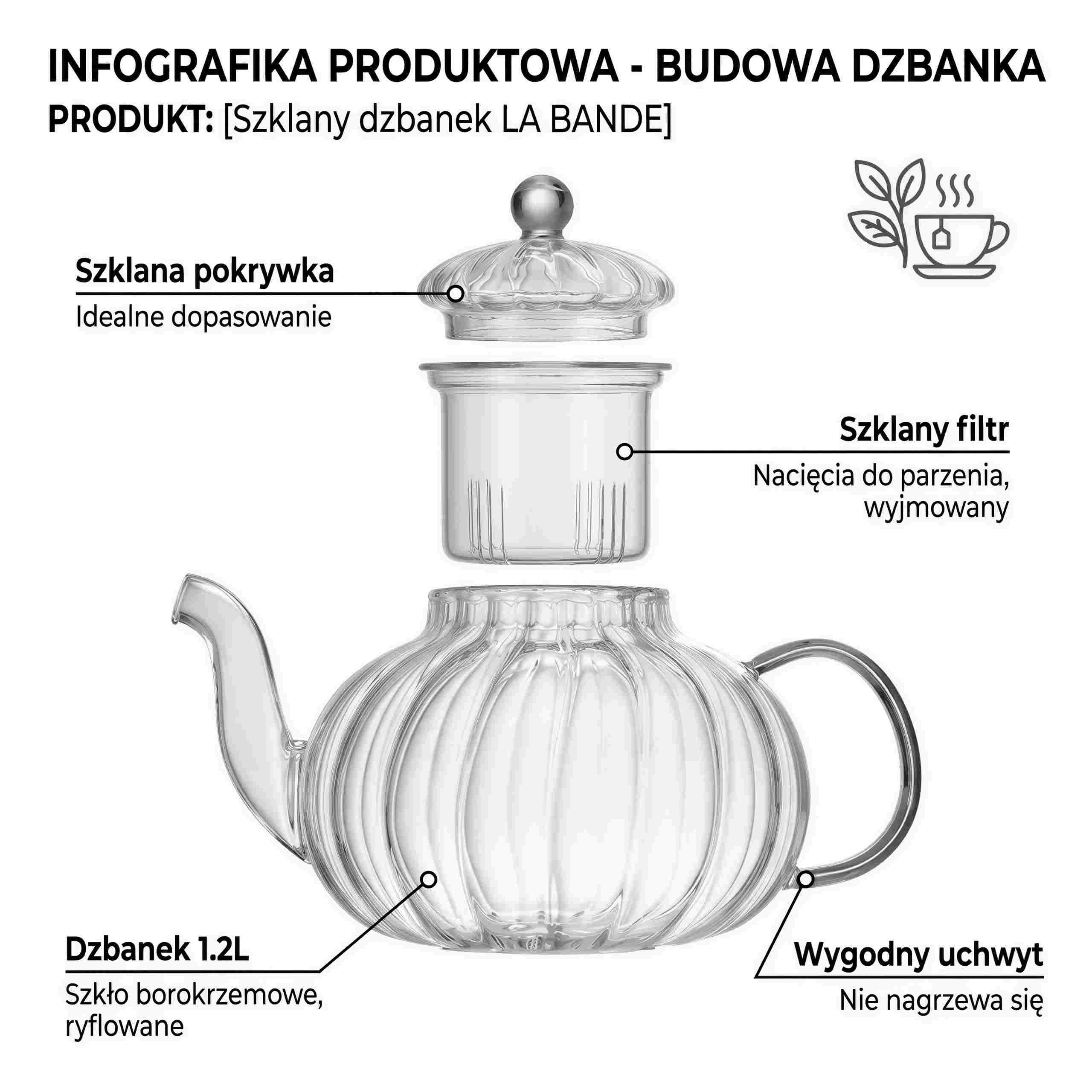 Szklany dzbanek zaparzacz do herbaty 1,2L – Twój codzienny rytuał ☕✨