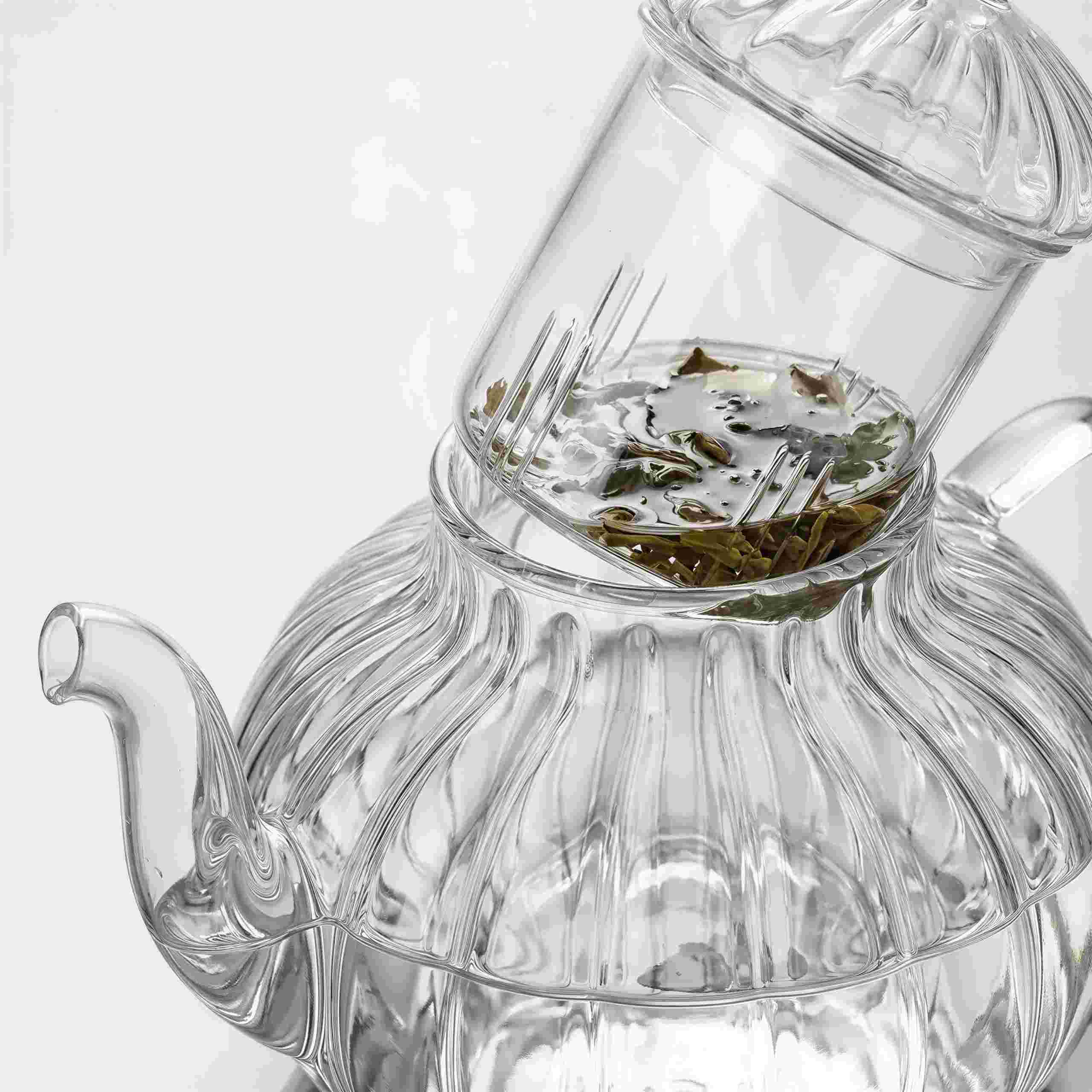 Dzbanek szklany do herbaty o pojemności 1,2 L wykonany z odpornego szkła borokrzemowego, wyposażony w szklany filtr.