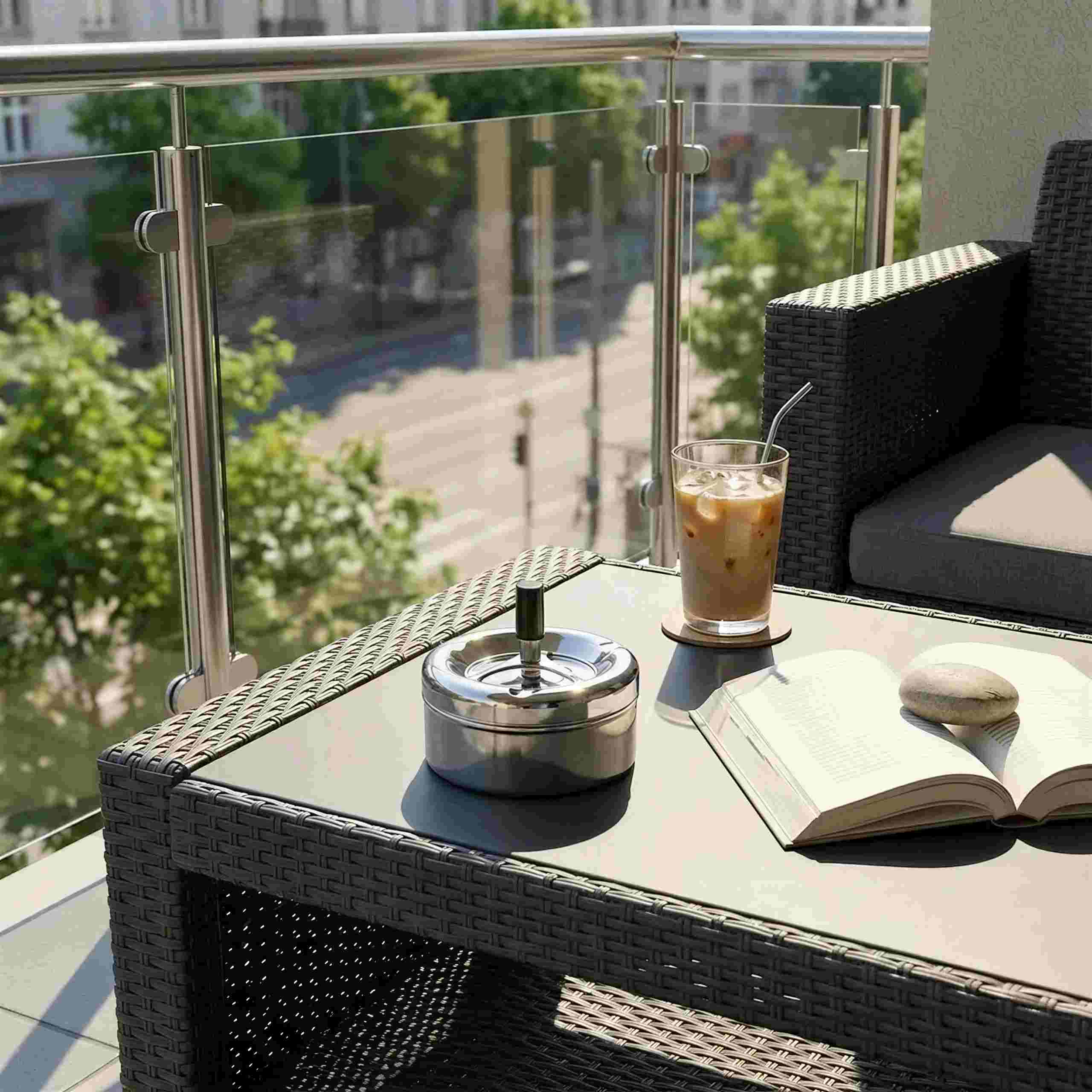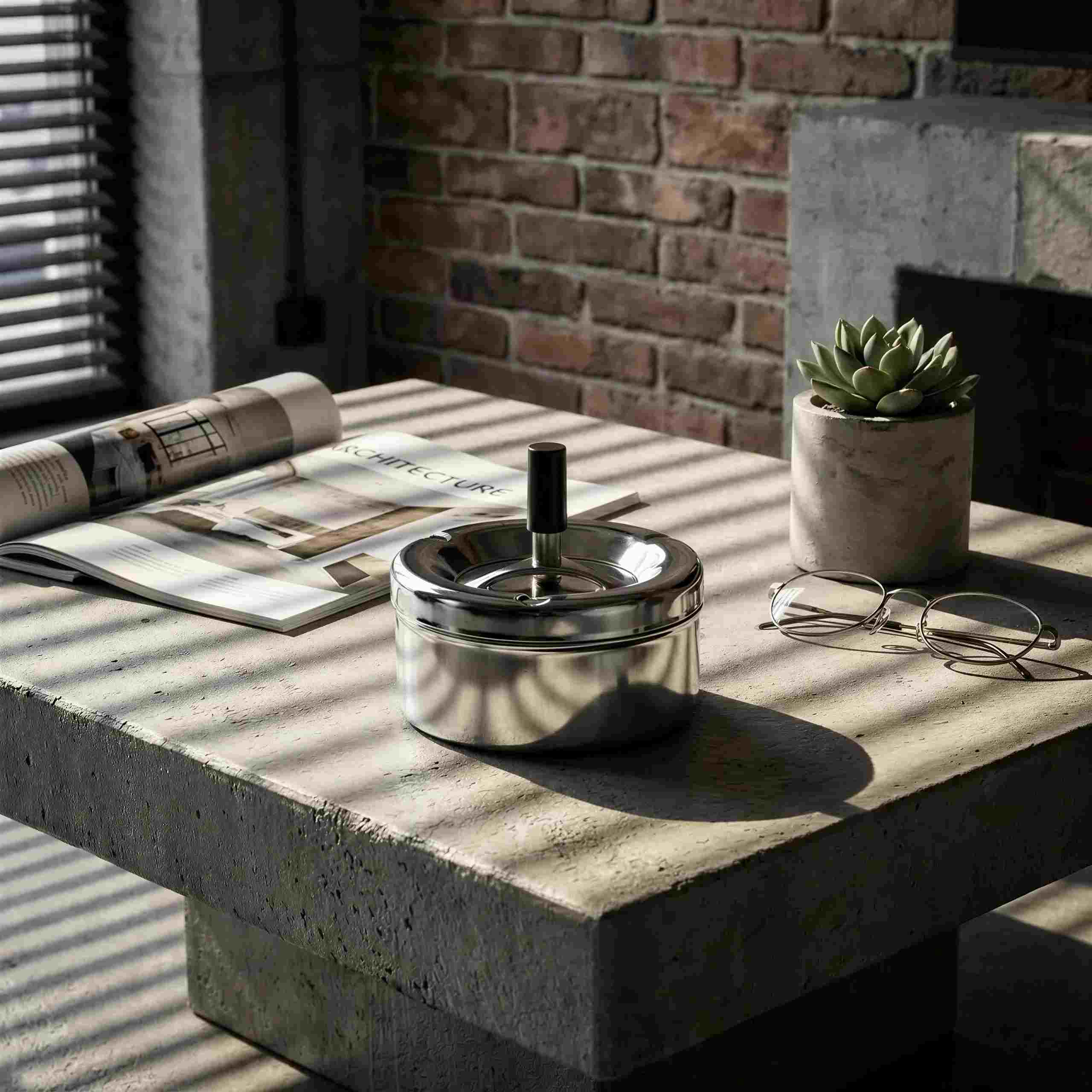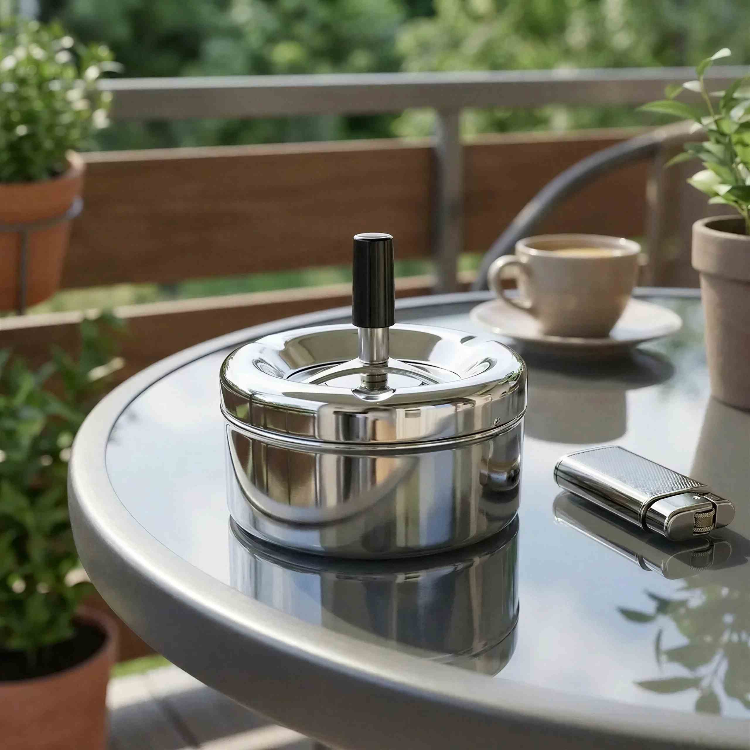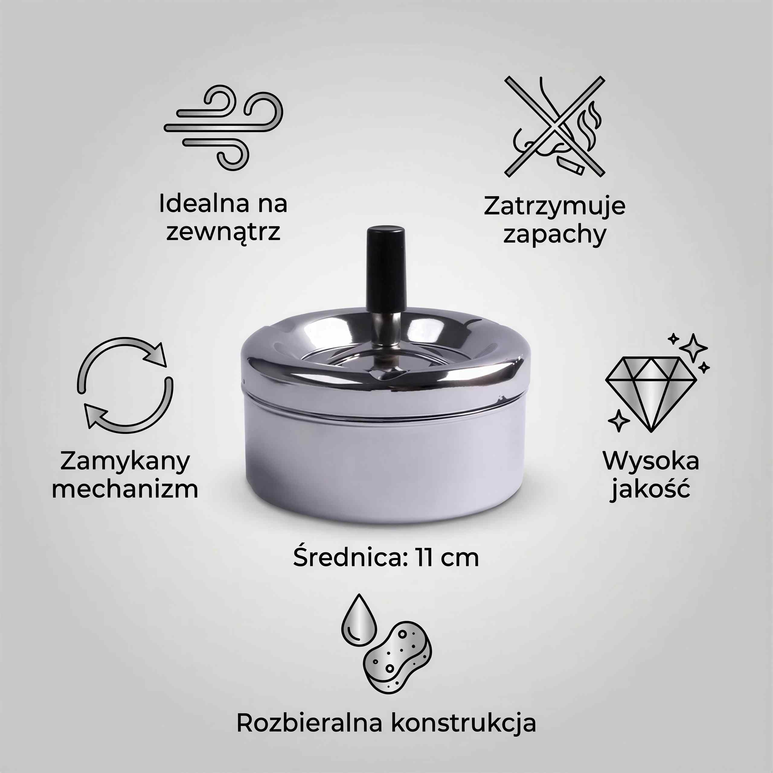 - ✅ ⏱️ ? KOMFORT I PORZĄDEK – chromowana powierzchnia i kompaktowy rozmiar sprawiają, że popielniczka szybko się czyści i stabilnie stoi, minimalizując bałagan i stres.