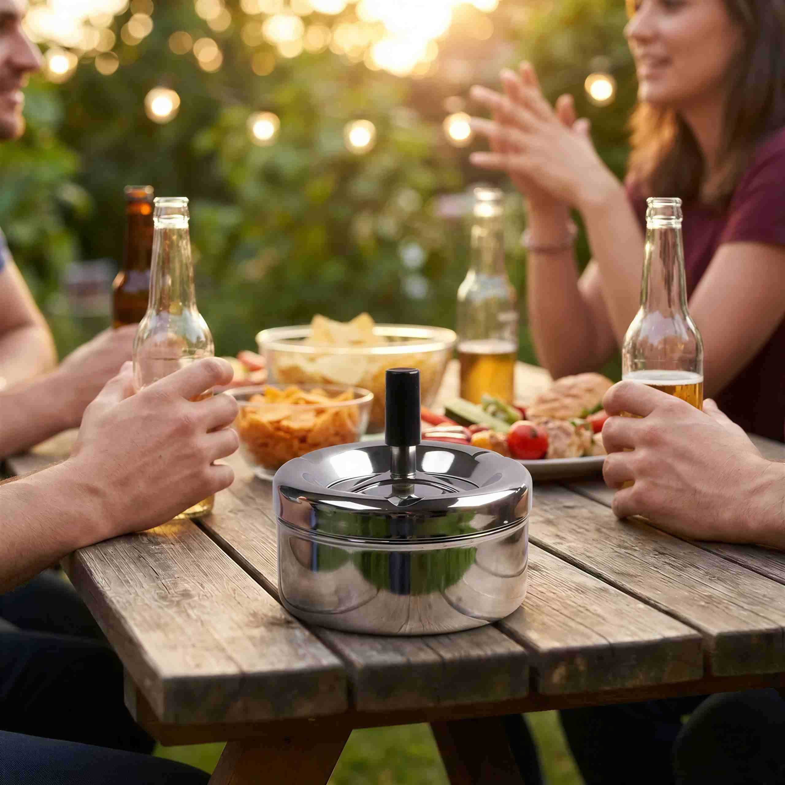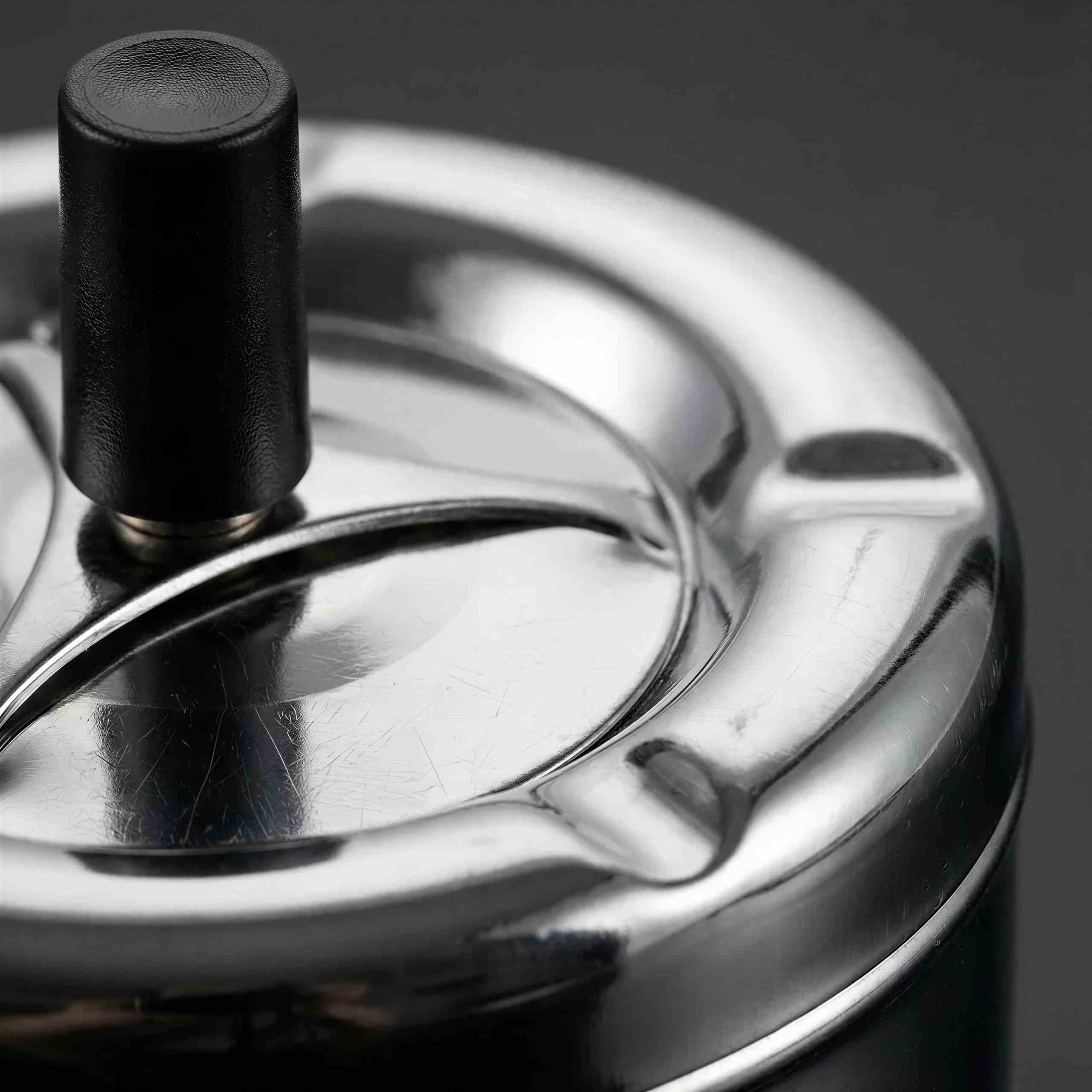 - Krok 3 — zamykaj popielniczkę po użyciu, aby ograniczyć dostęp powietrza i zmniejszyć nieprzyjemne zapachy, wykorzystując solidną konstrukcję ze stali nierdzewnej.