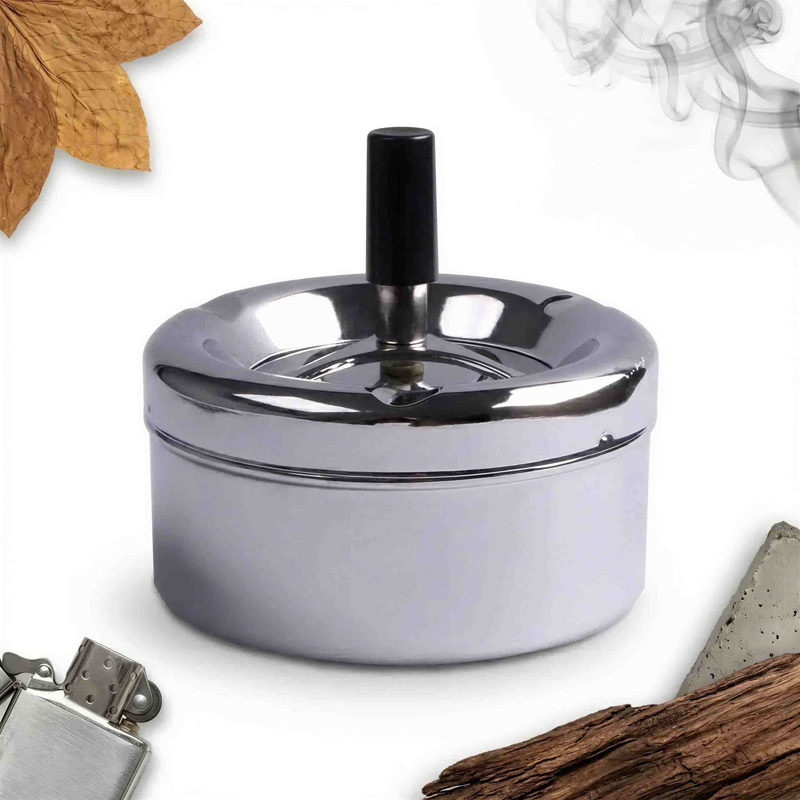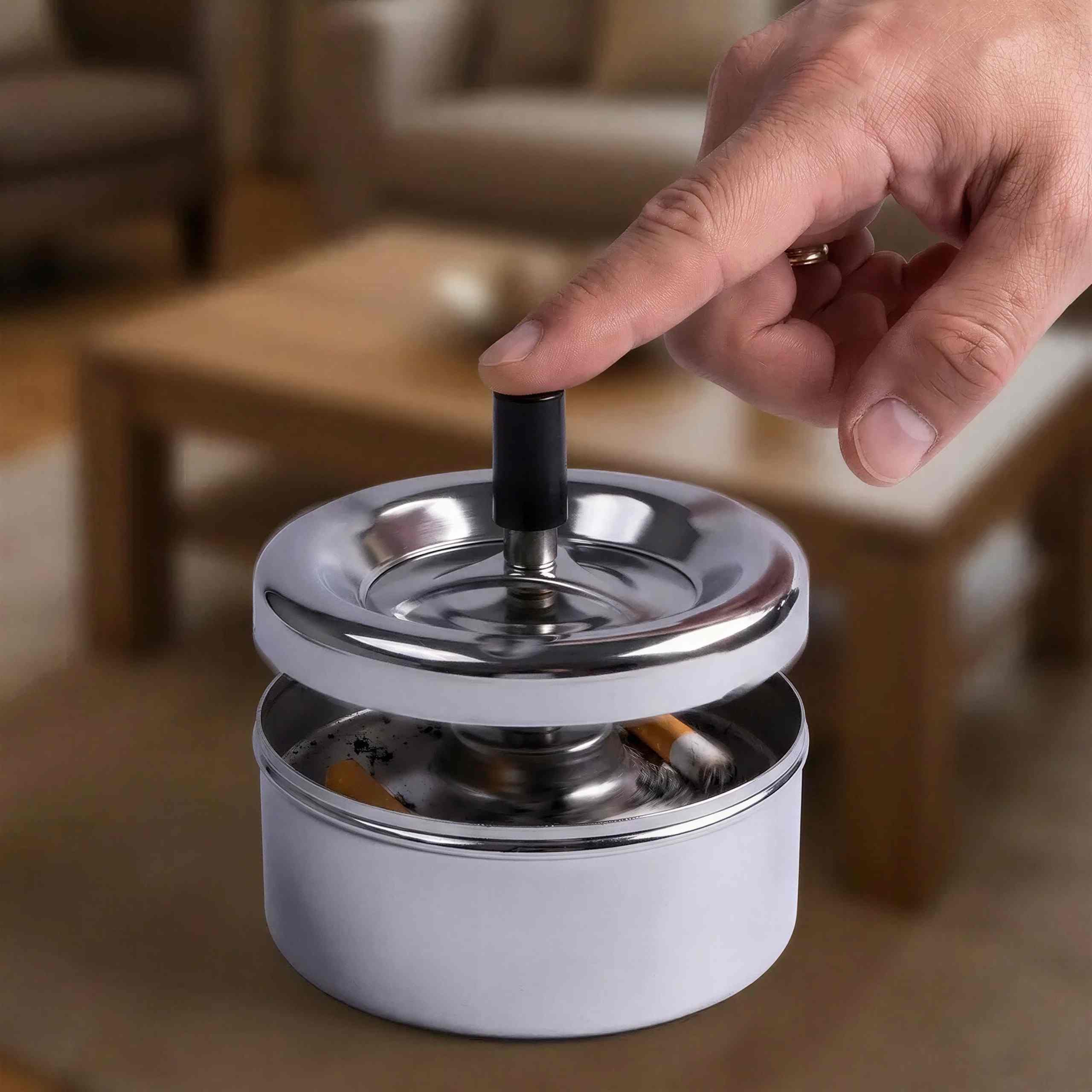 Wygodna i solidna Popielniczka Popielnica Obrotowa Zamykana Metalowa Srebrna – idealna do Twojego miejsca palenia!