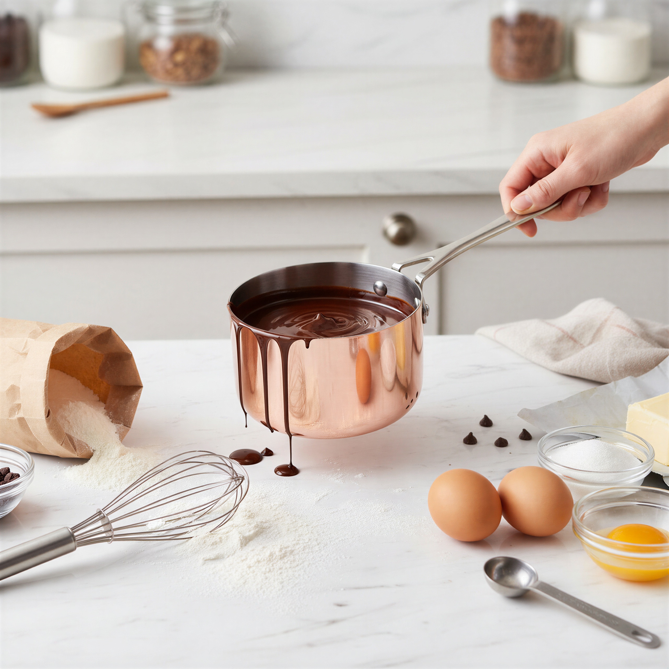 Wyobraź sobie ten moment, gdy ciepło miedziowanego garnuszka otula Twoje dłonie, a srebrzysty połysk stali szlachetnej odbija poranne światło. Gładka powierzchnia i lekkość tego naczynia sprawiają, że każde przesuwanie i nalewanie staje się proste i przyjemne. Możesz niemal usłyszeć delikatne skwierczenie smażonych składników i poczuć aromat, który powoli wypełnia kuchnię.