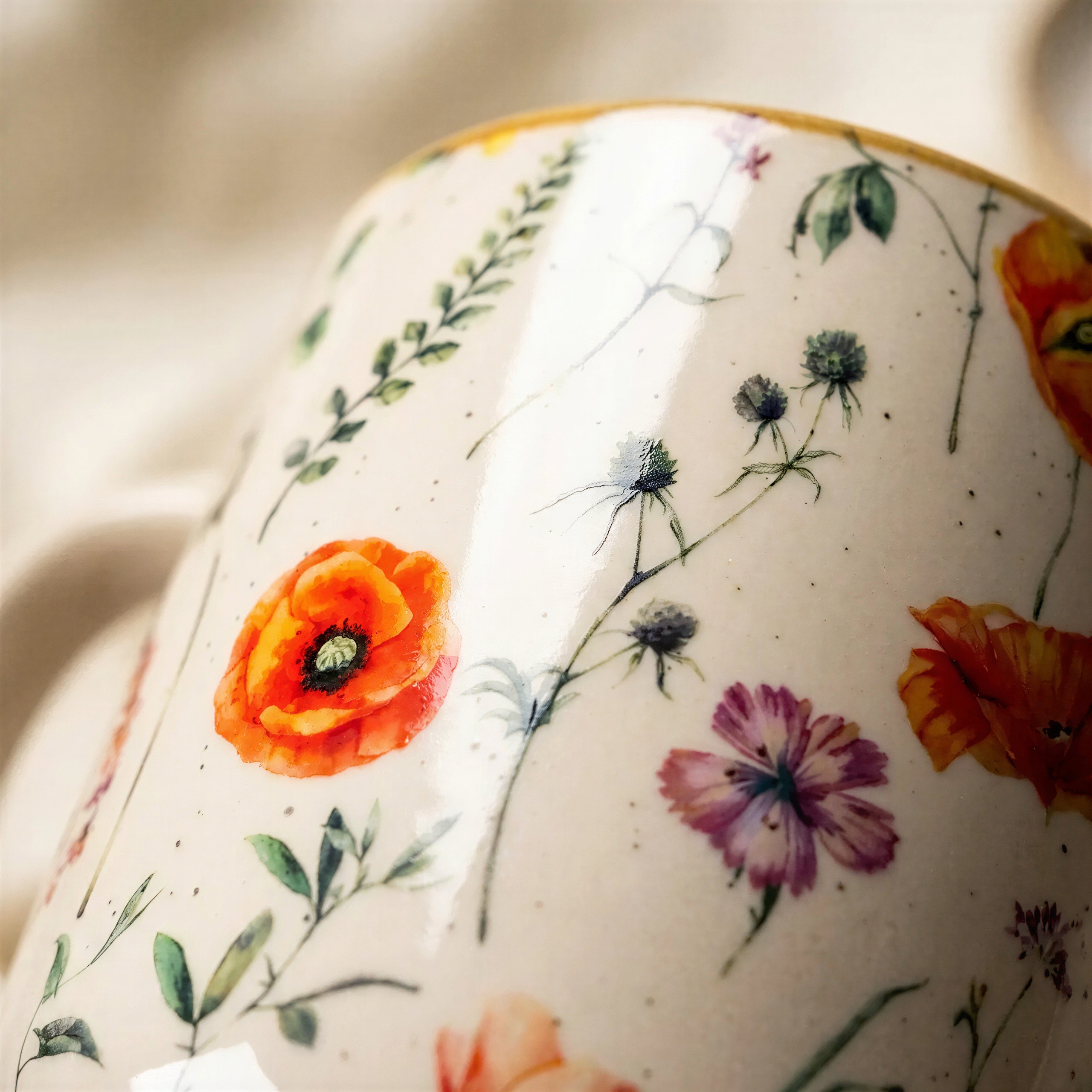 - ✅ Wyjątkowy design – bezrowy wzór maków nadaje kubkowi naturalny, lekki charakter, który uprzyjemni każdą chwilę przy stole.