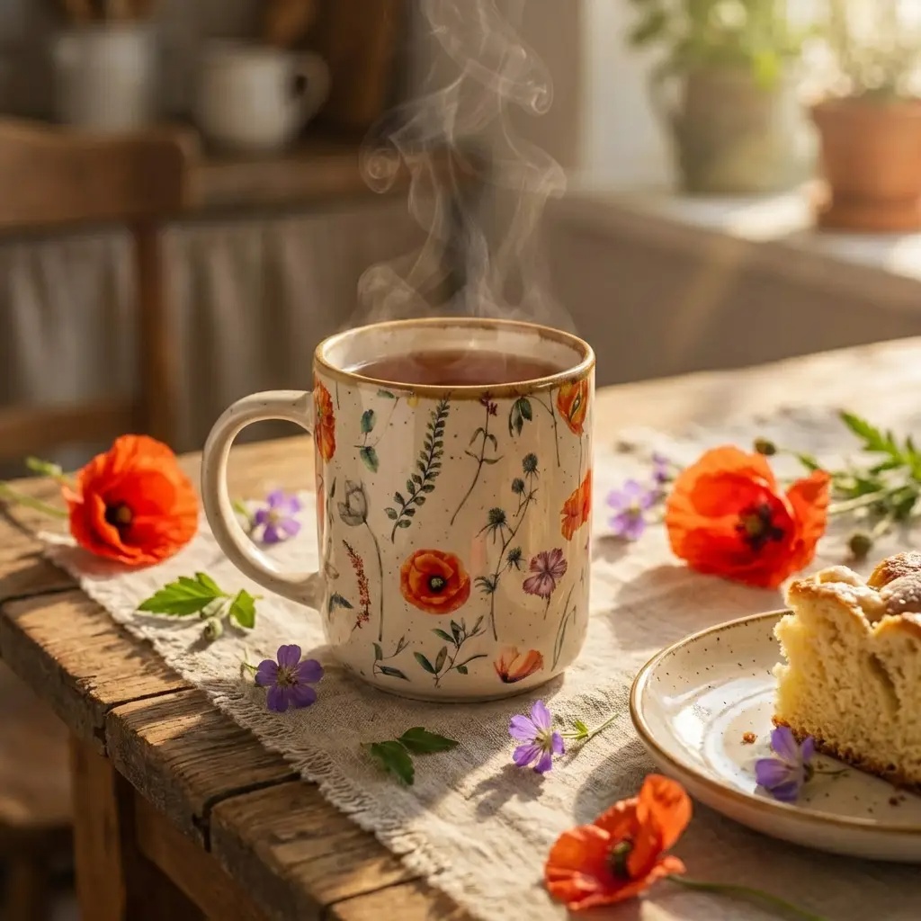 - ✅ ☀️ – Poczuj spokój i ciepło poranka dzięki ręcznie malowanym makom na jasnym tle, które dodają uroku każdej chwili z herbatą lub kawą.