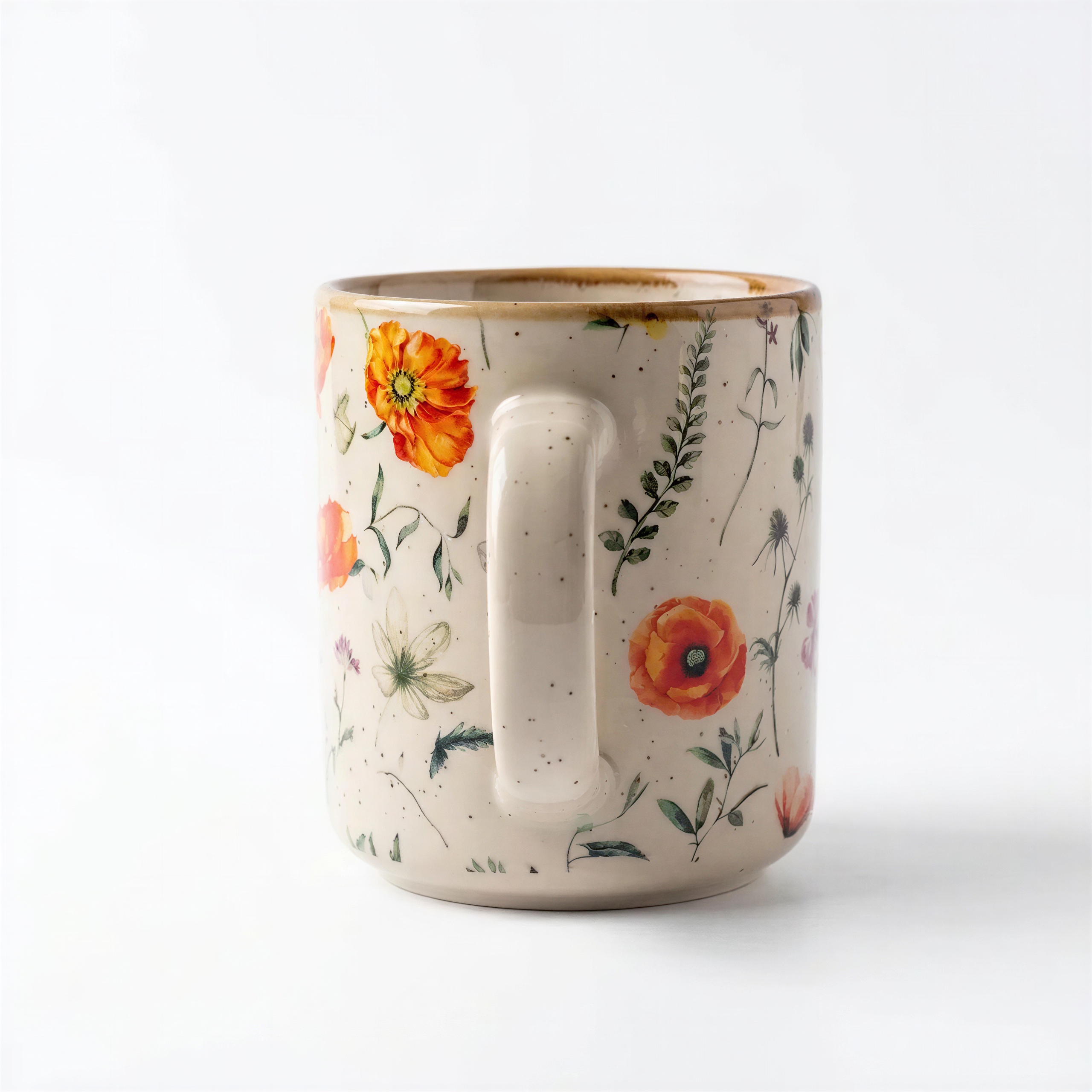 Kiedy bierzesz go do ręki, czujesz gładką ceramikę, lekko chłodną, która powoli ogrzewa się pod wpływem ciepłego napoju. Wzór maków przypomina letni poranek na wsi, a kolorystyka wprowadza lekkość i spokój. To nie tylko kubek, to dotyk natury i chwila zatrzymania się w codziennym pędzie ☀️.