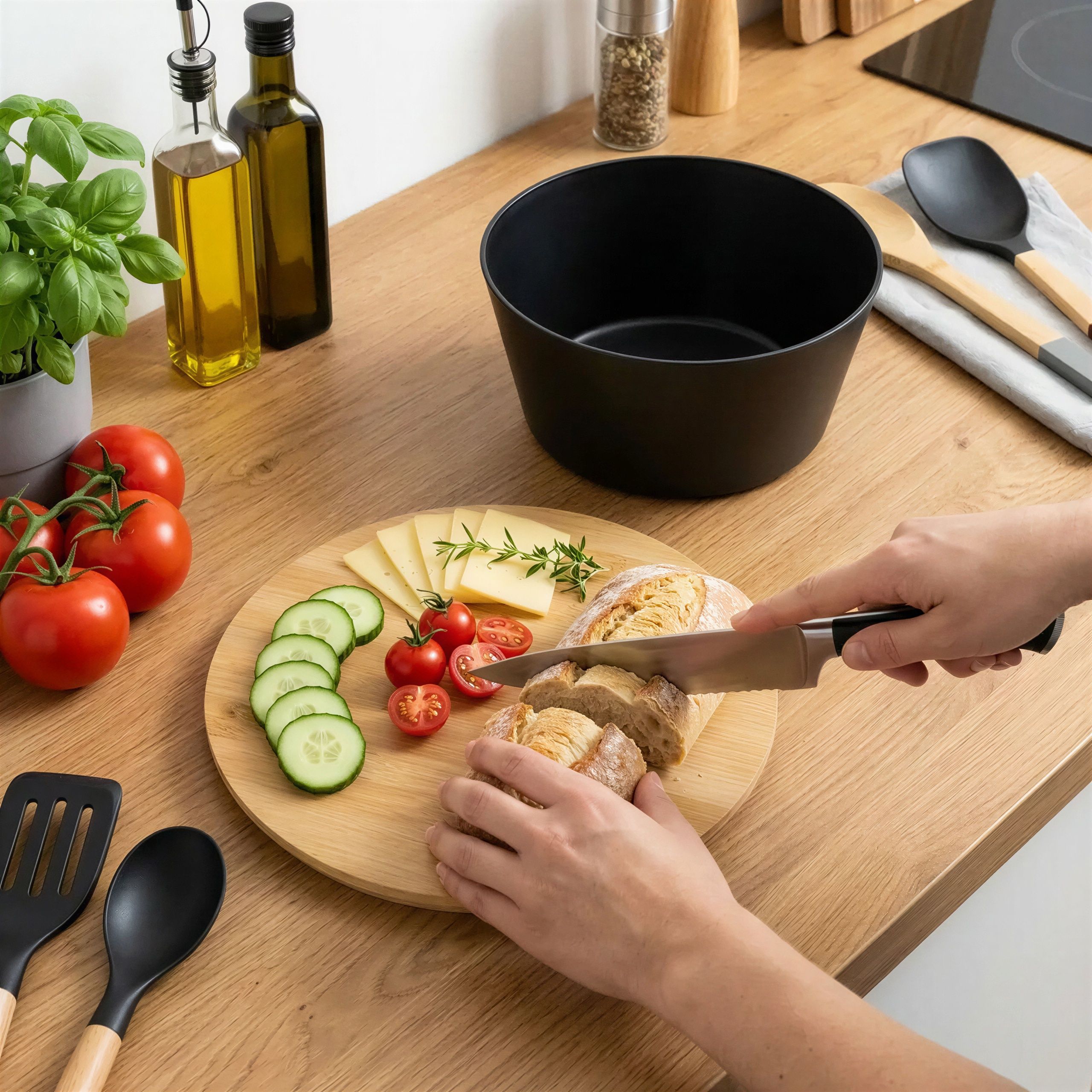 Właśnie wtedy pojawia się miska czarna z bambusową pokrywą o pojemności 4 litrów. To nie tylko naczynie do przechowywania ulubionych sałatek czy przekąsek – pokrywa z naturalnego bambusa służy też jako praktyczna deska do krojenia. Wszystko w jednym, bez bałaganu i zbędnych gadżetów.