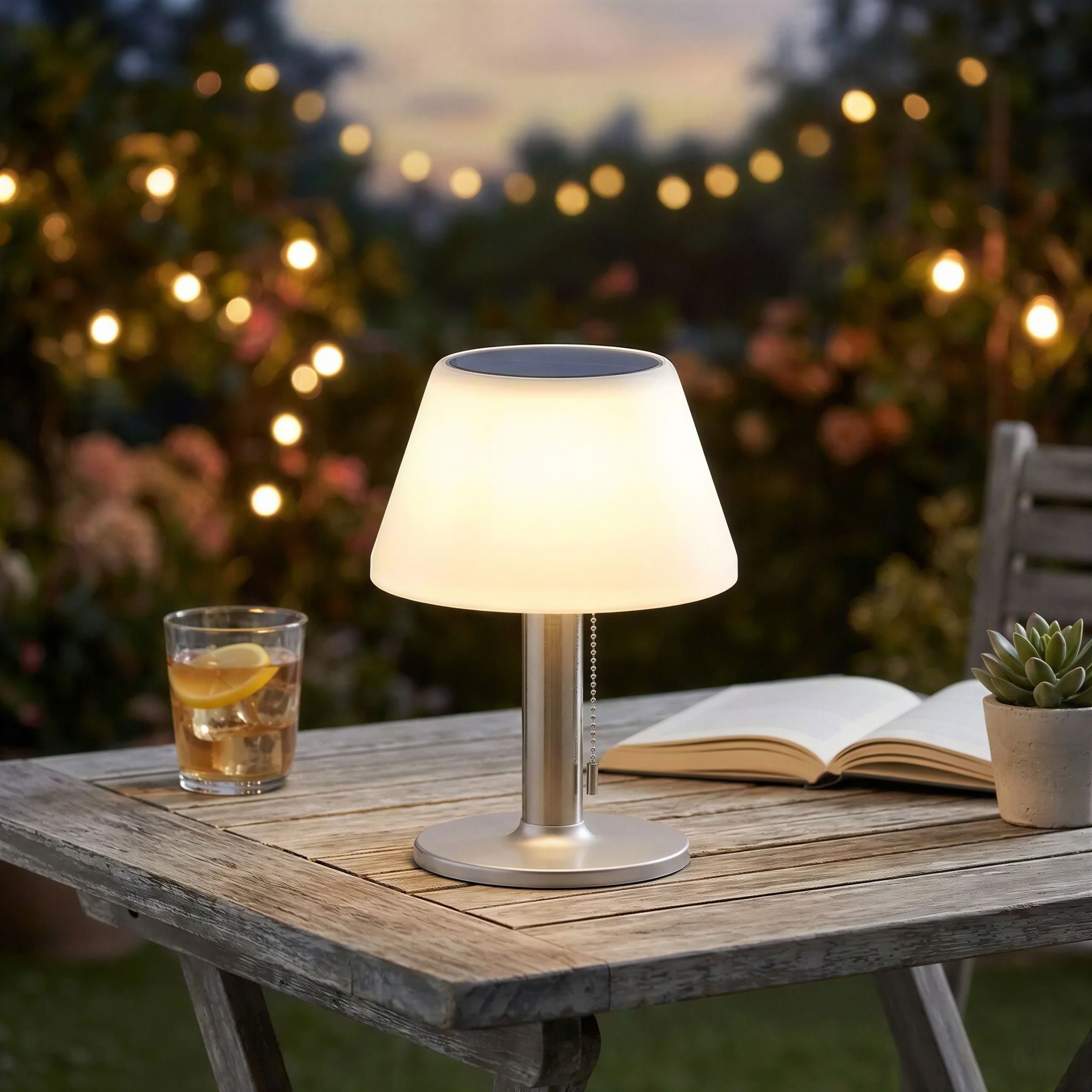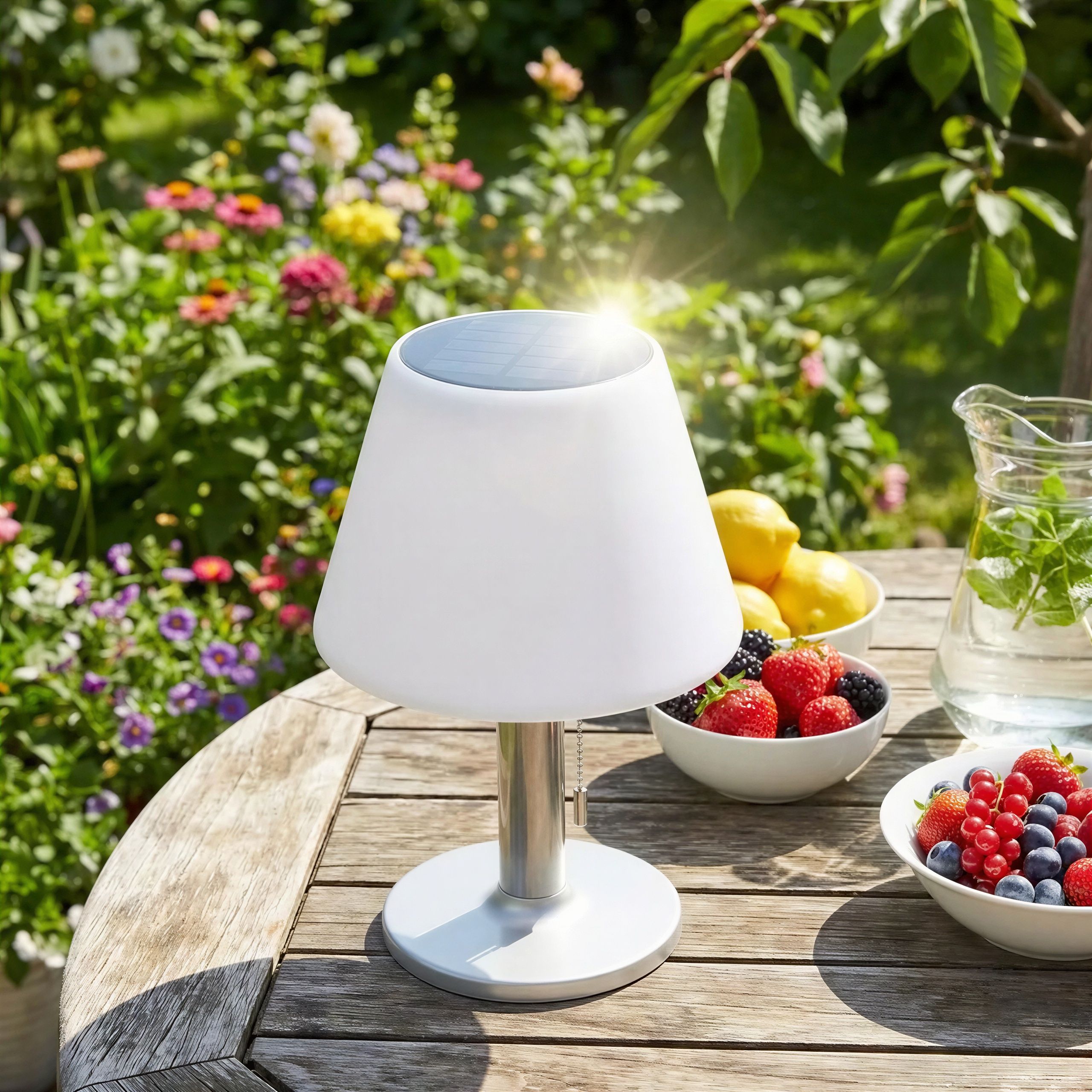 Lampa solarna LED do oświetlenia ogrodu, balkonu lub tarasu, która tworzy wyjątkowy klimat bez kabli i konieczności wymiany baterii.