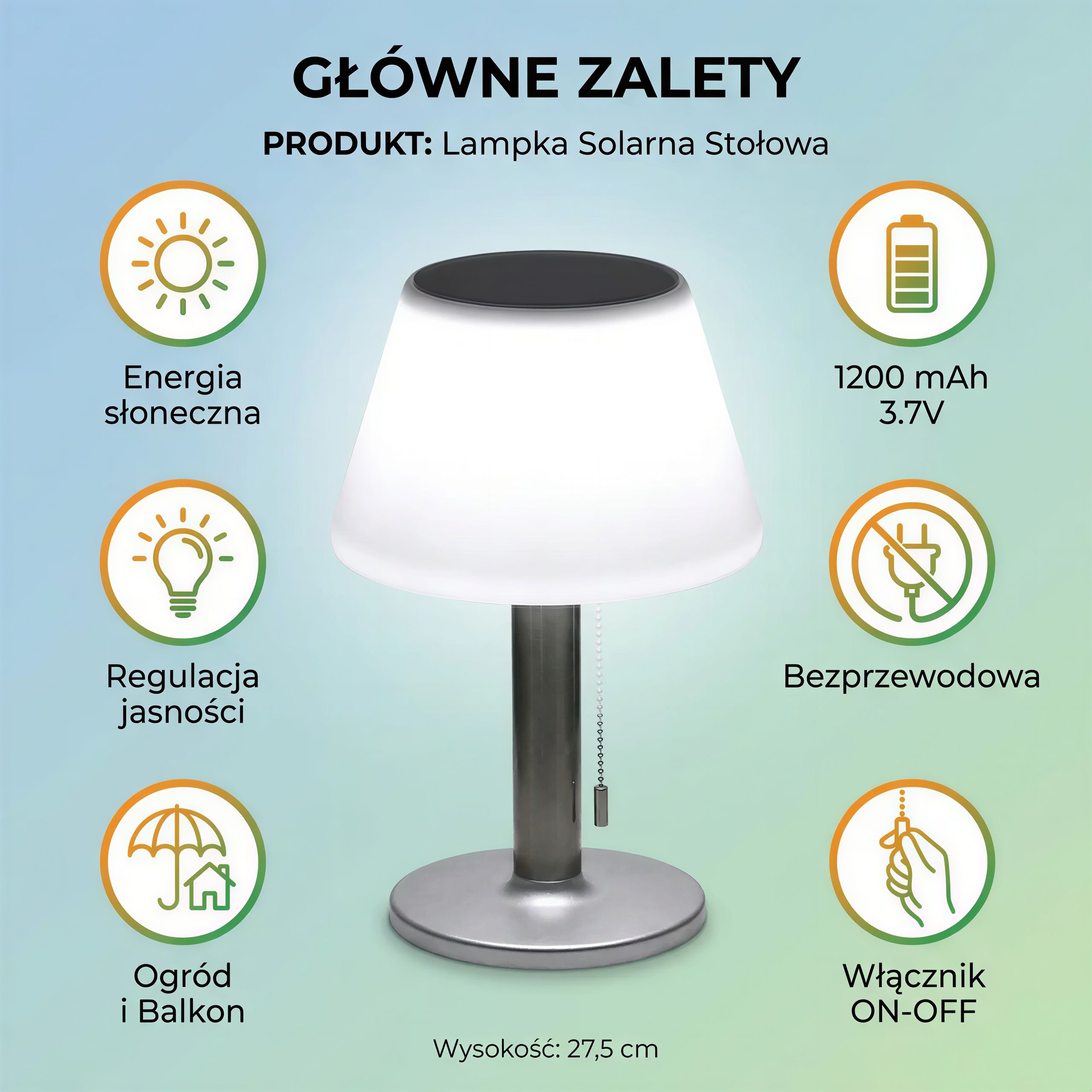 Wtedy na scenę wchodzi lampa solarna LED o wysokości 27,5 cm, która łatwo ustawisz na stole czy parapecie. Bez kabli, zasilana energią słoneczną, wprowadza ciepłe światło, które oświetli Twój balkon, taras czy ogród dokładnie tam, gdzie tego potrzebujesz.
