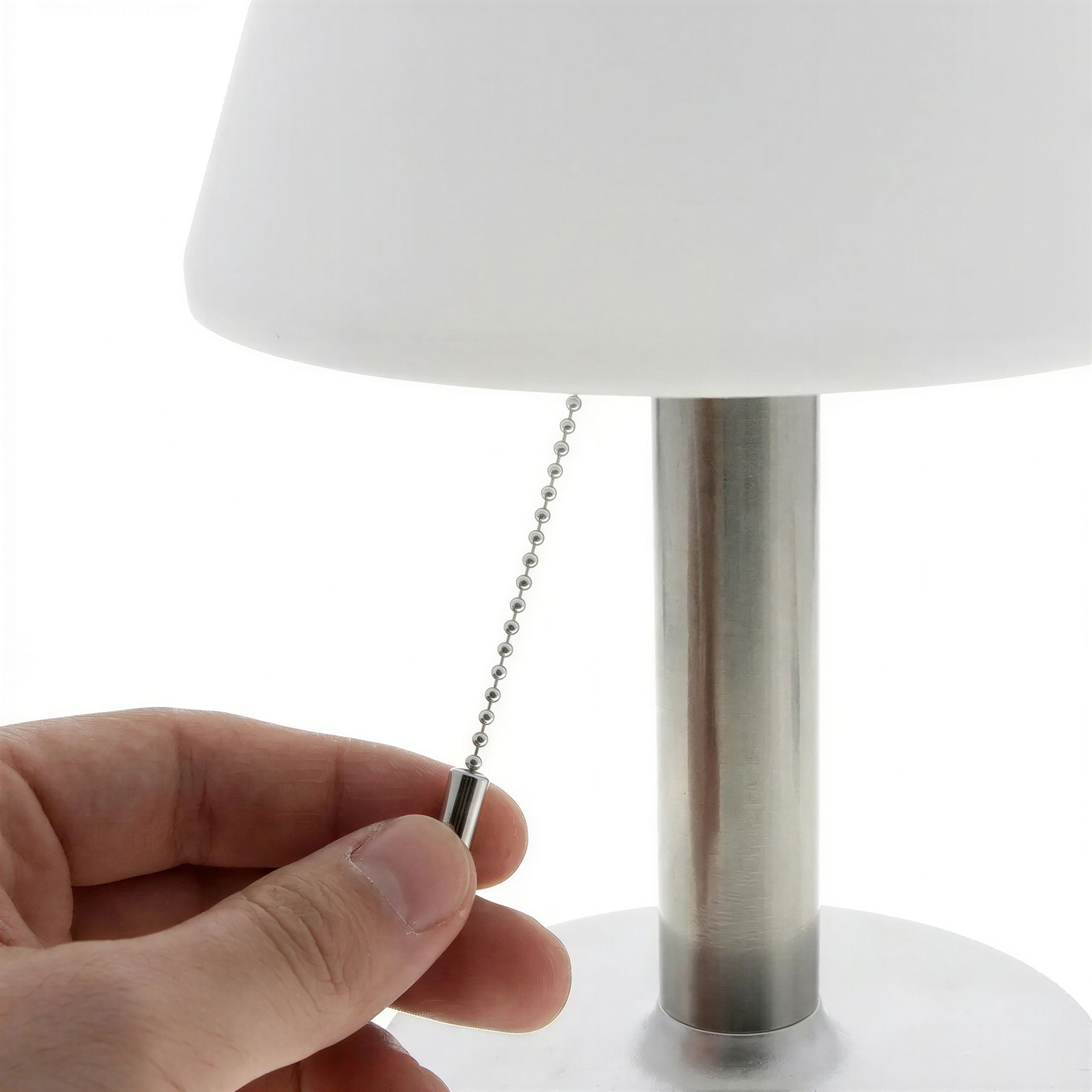 - Włącz lampę przyciskiem ON, a jasność reguluj delikatnym pociągnięciem za sznurek, wybierając spośród trzech poziomów świecenia.