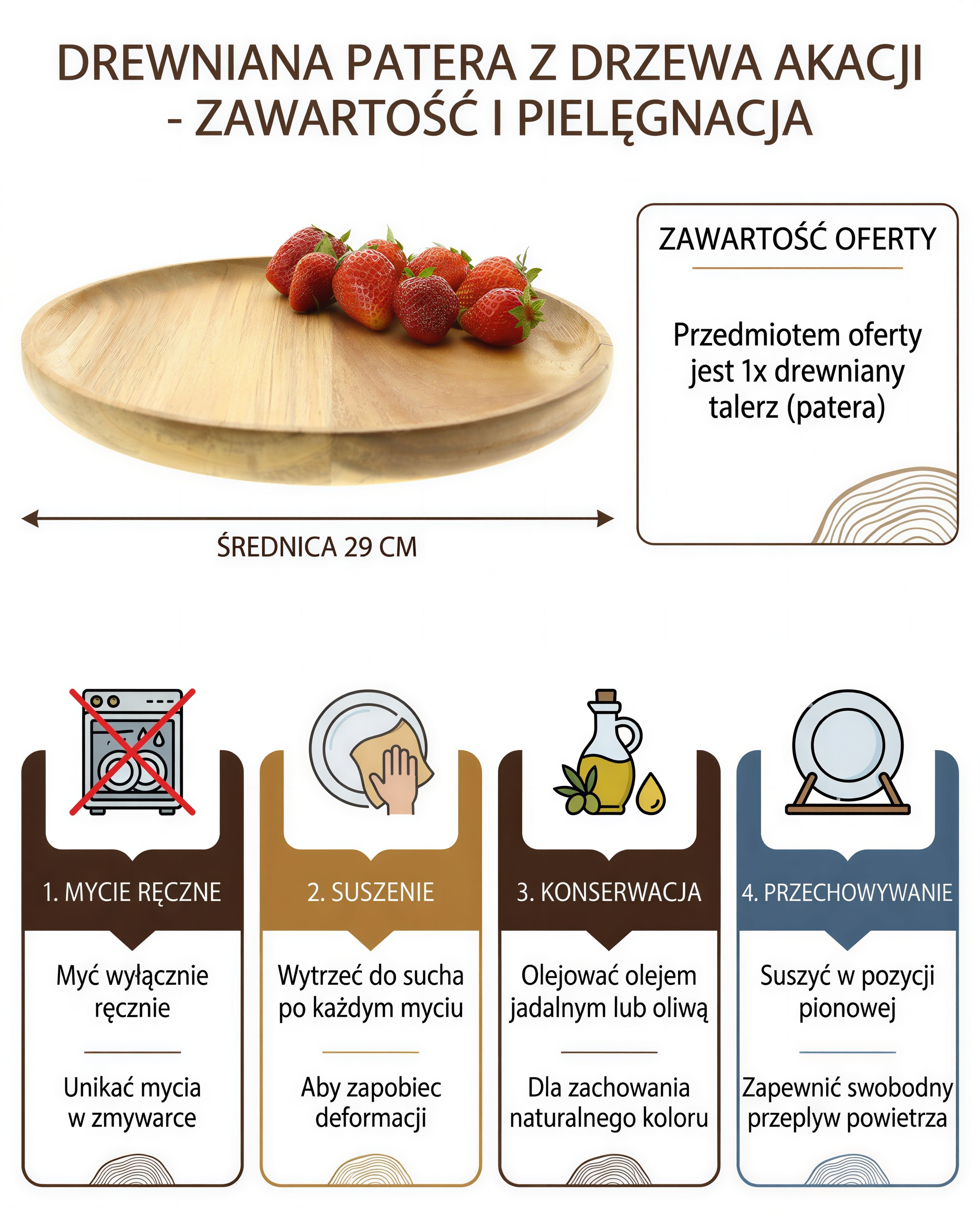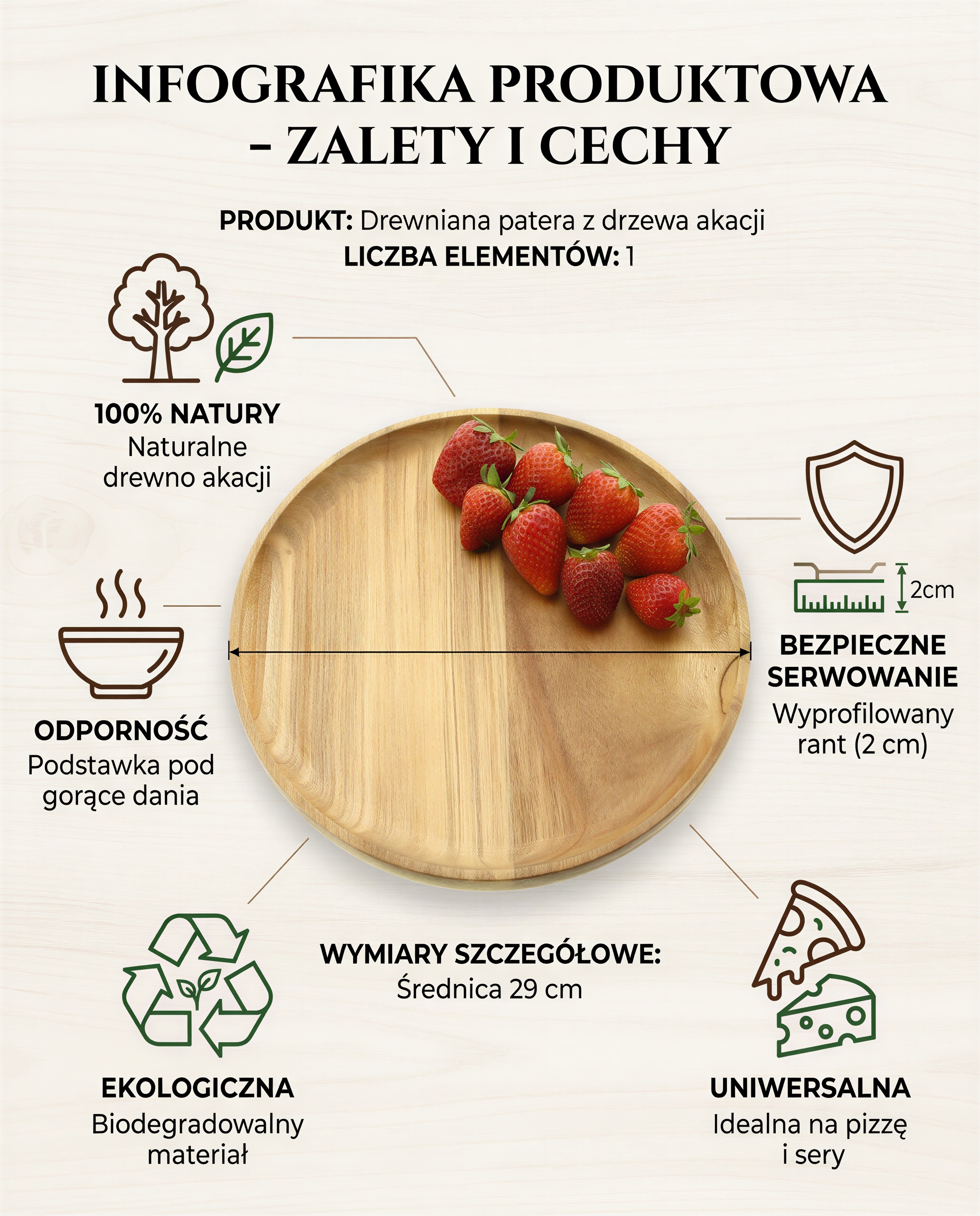 - ✅ Ekologiczny wybór – produkt w 100% z naturalnego, biodegradowalnego drewna akacji.